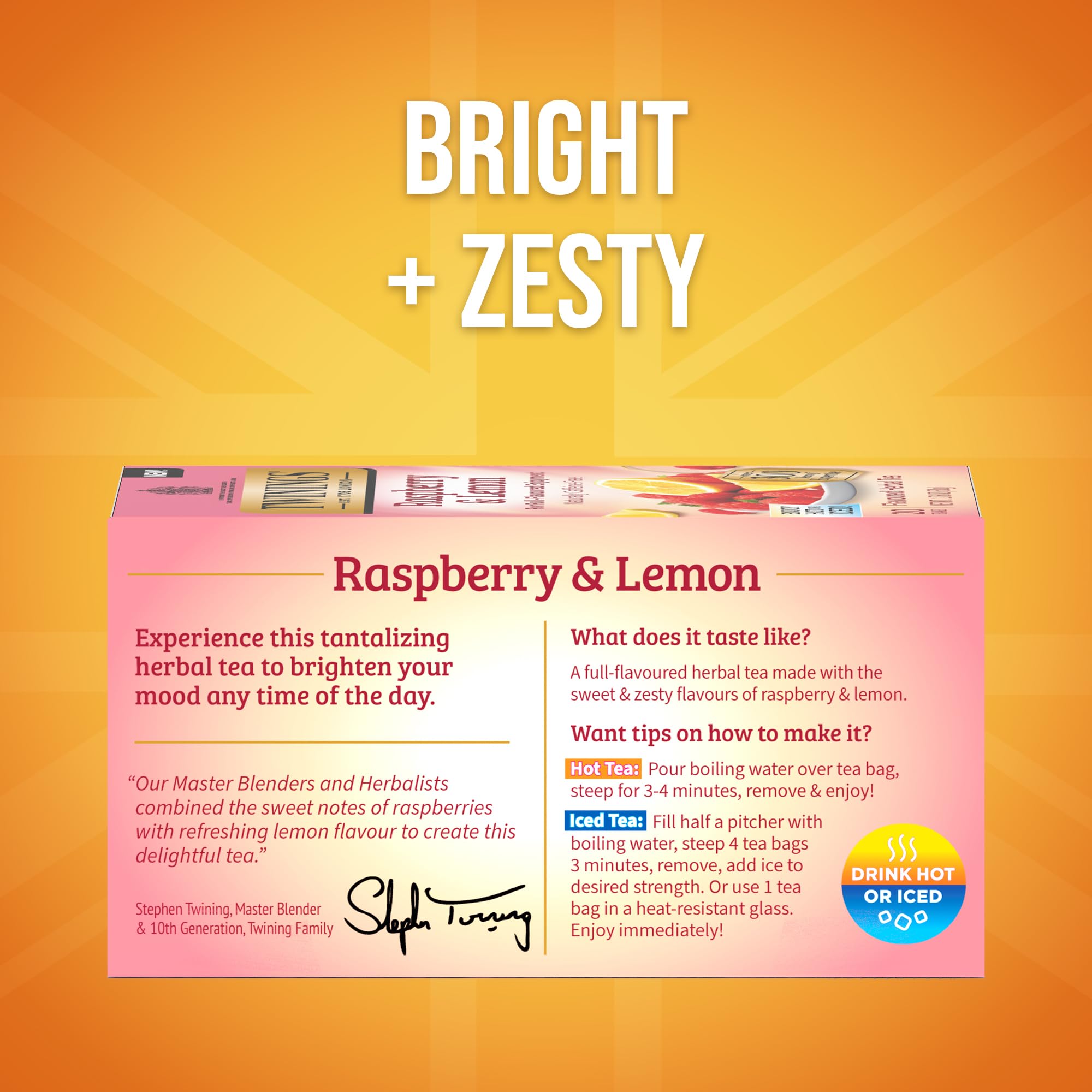 TASTING NOTES: A full-flavoured herbal tea made with the sweet & zesty flavours of raspberry & lemon