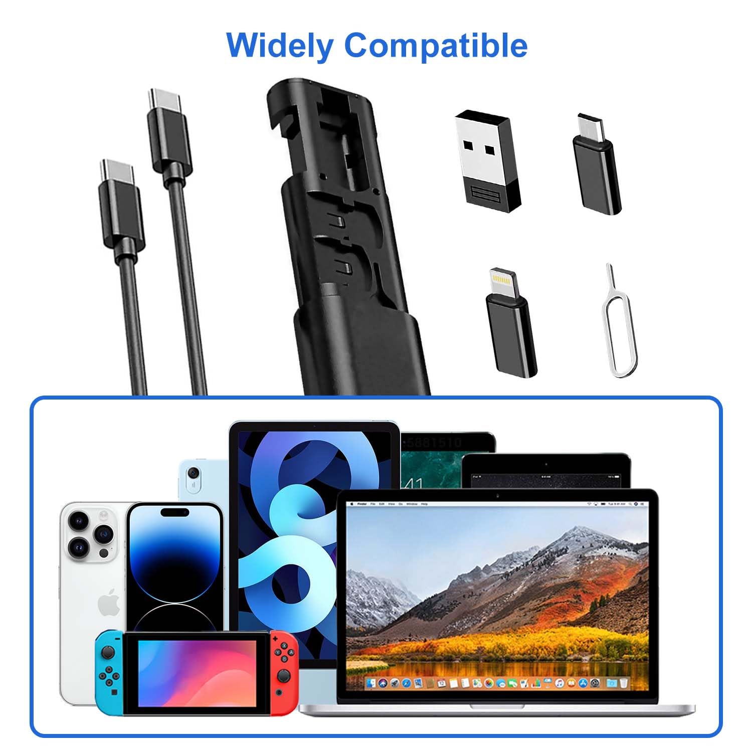 【Multifunctional USB Adapter Kit】 Our interchangeable charging cable is versatile and convenient to store. Type-c to Type-c;Type-c to Micro;Type-c to light-ning;USB to Type C, USB to Light-ning,USB to micro adapter. This multi usb charging adapter cable kit is used for charging and data transfer for iPhone iPad Sam-sung Android devices PC Computer and digital electronic gadgets, also contain a SIM card tray eject tool, SIM card, and SD card slots.