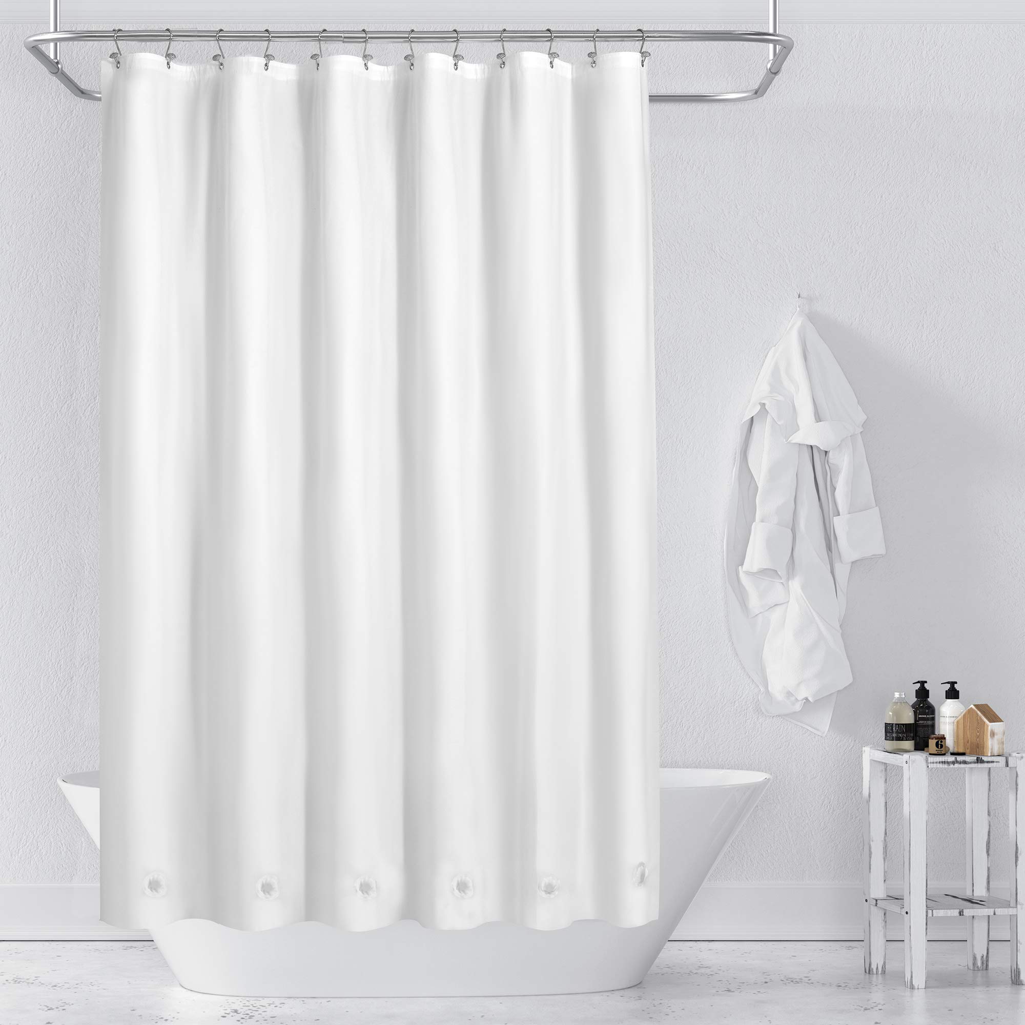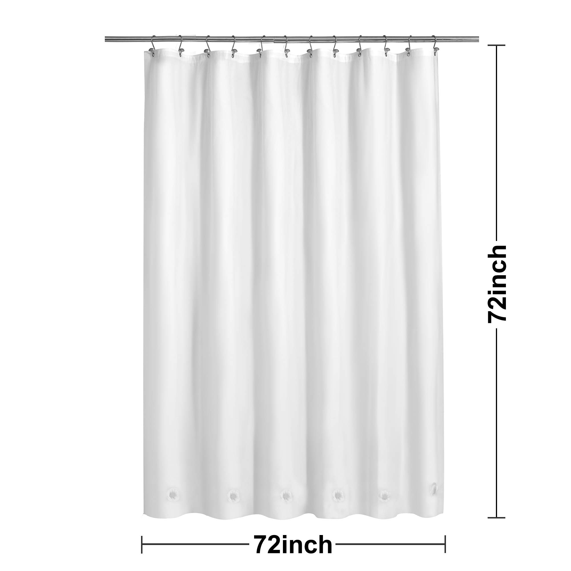 Premium PEVA: 100% premium PEVA material with medium weight. This shower curtain liner is no chemical odor, PVC-free and BPA-free