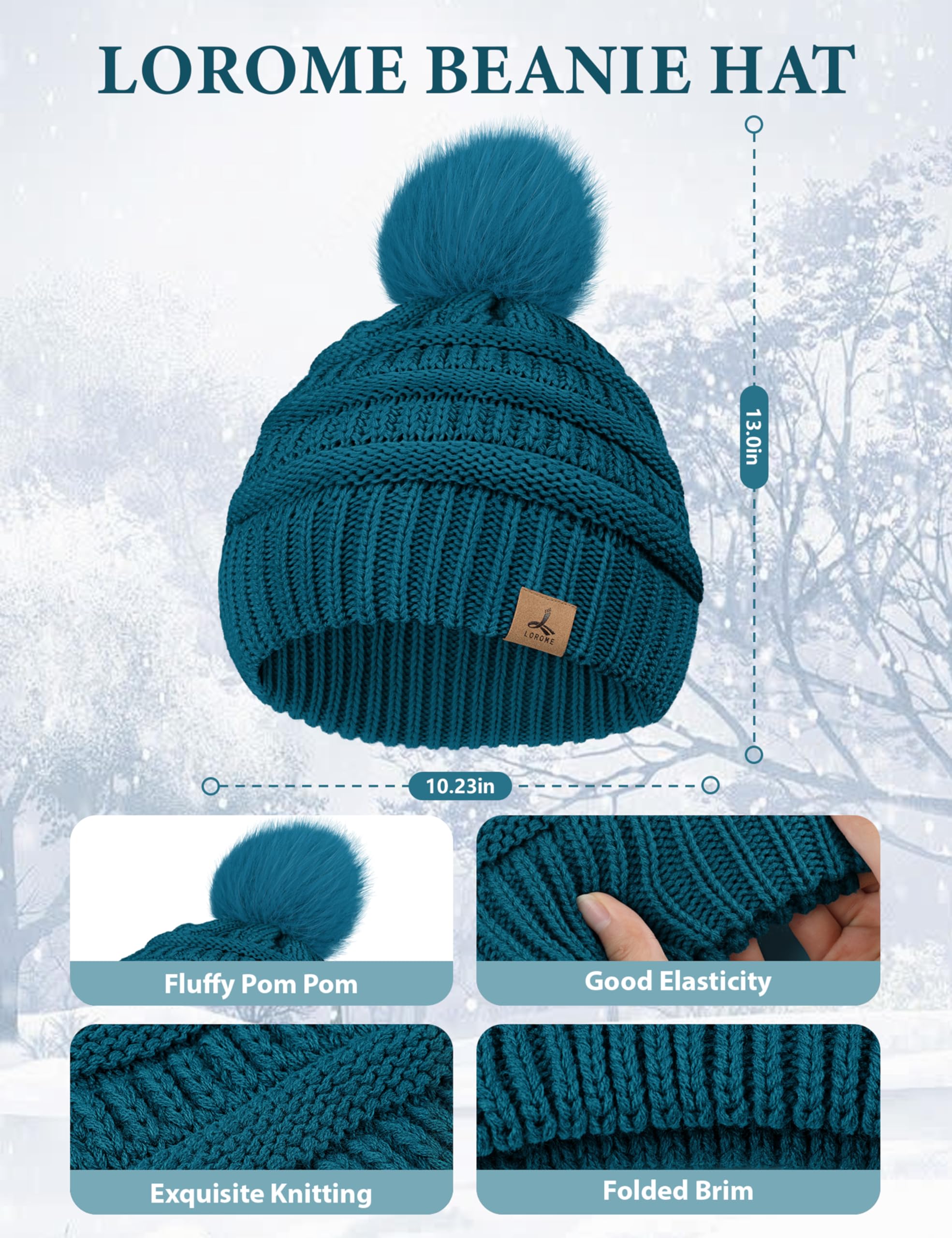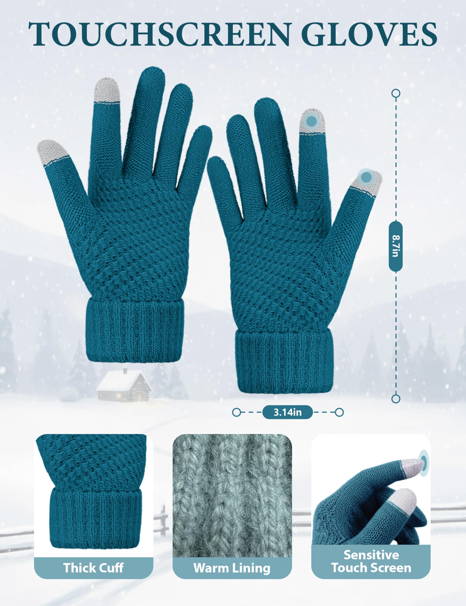 You Will Receive - This cyan winter set includes a knitted furball hat, a knitted scarf, a pair of touchscreen gloves and a plush ear warmer. Keep you stylish and warm even in the cold winter.