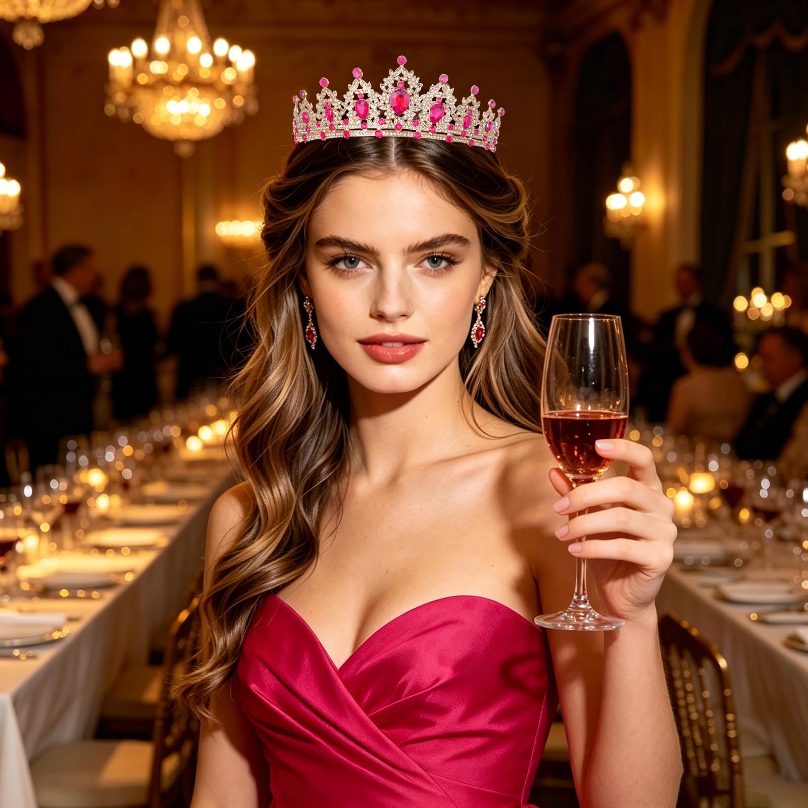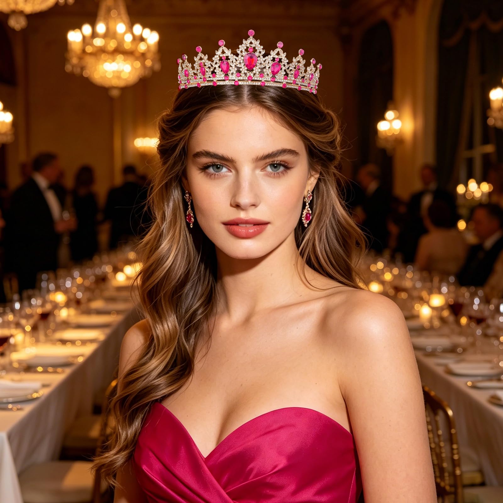 Sturdy Crown: This gold tiara is handmade by durable alloy and rhinestone. Rose Red Crystal Crown is beautiful,well-made and very solid and comfortable to wear, with hard texture for practicality and aesthetics.