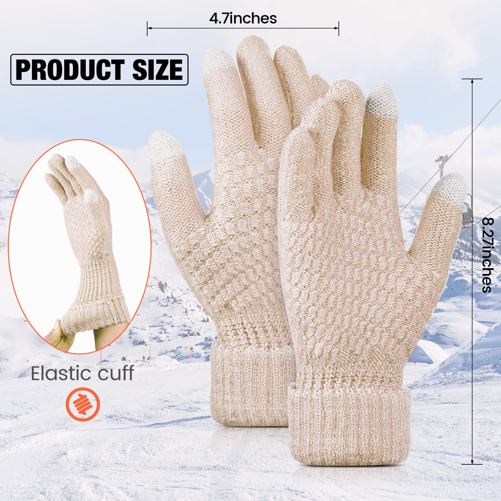 Practical touchscreen design: with conductive fabric on finger tips (thumb and index finger), these warm touchscreen gloves are compatible with smartphone, tablet, smart watches, driver of cars with touchscreen panels, allowing you to play with your touchscreen devices, without worrying about freezing hands