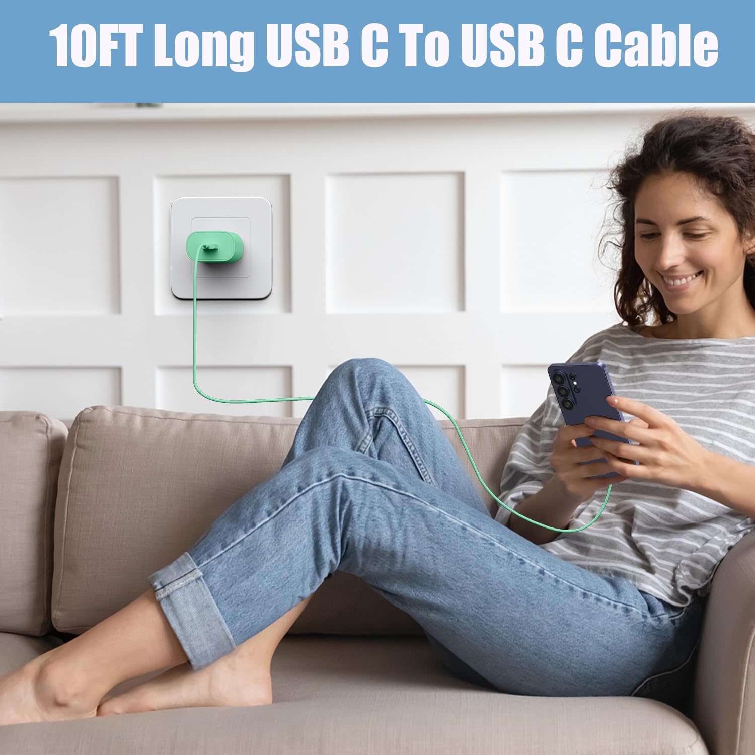 【10 Feet C Cable Cable Fast Charging】25W Super fast charger type c kit includes 10 feet/3m super long type c to type c cables,allows you to charge your Samsung phones and other usb-c devices from extra long distance, and freely enjoy playing games while super fast charging.Output 3A high power and supports data transfer speed up to 480Mbps.