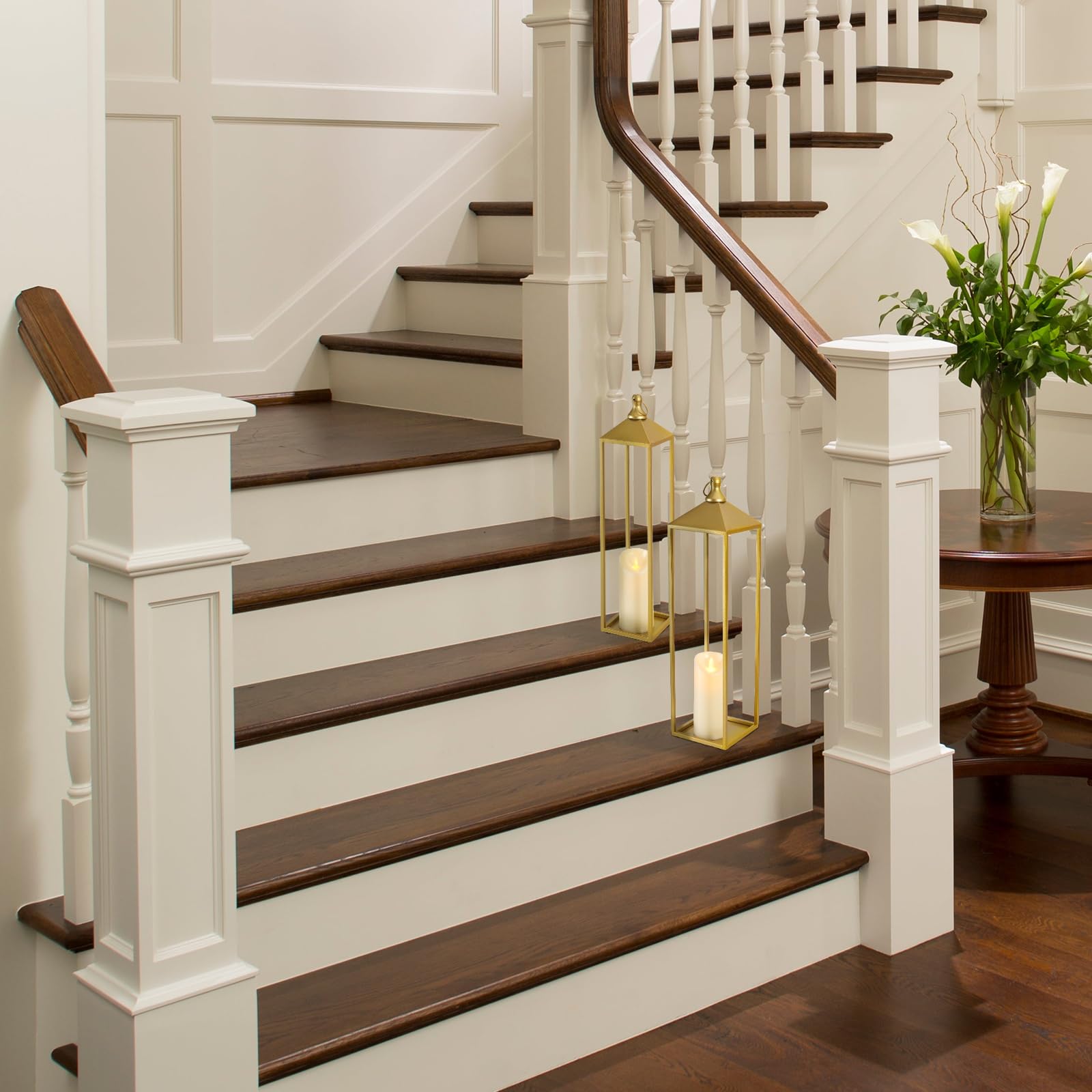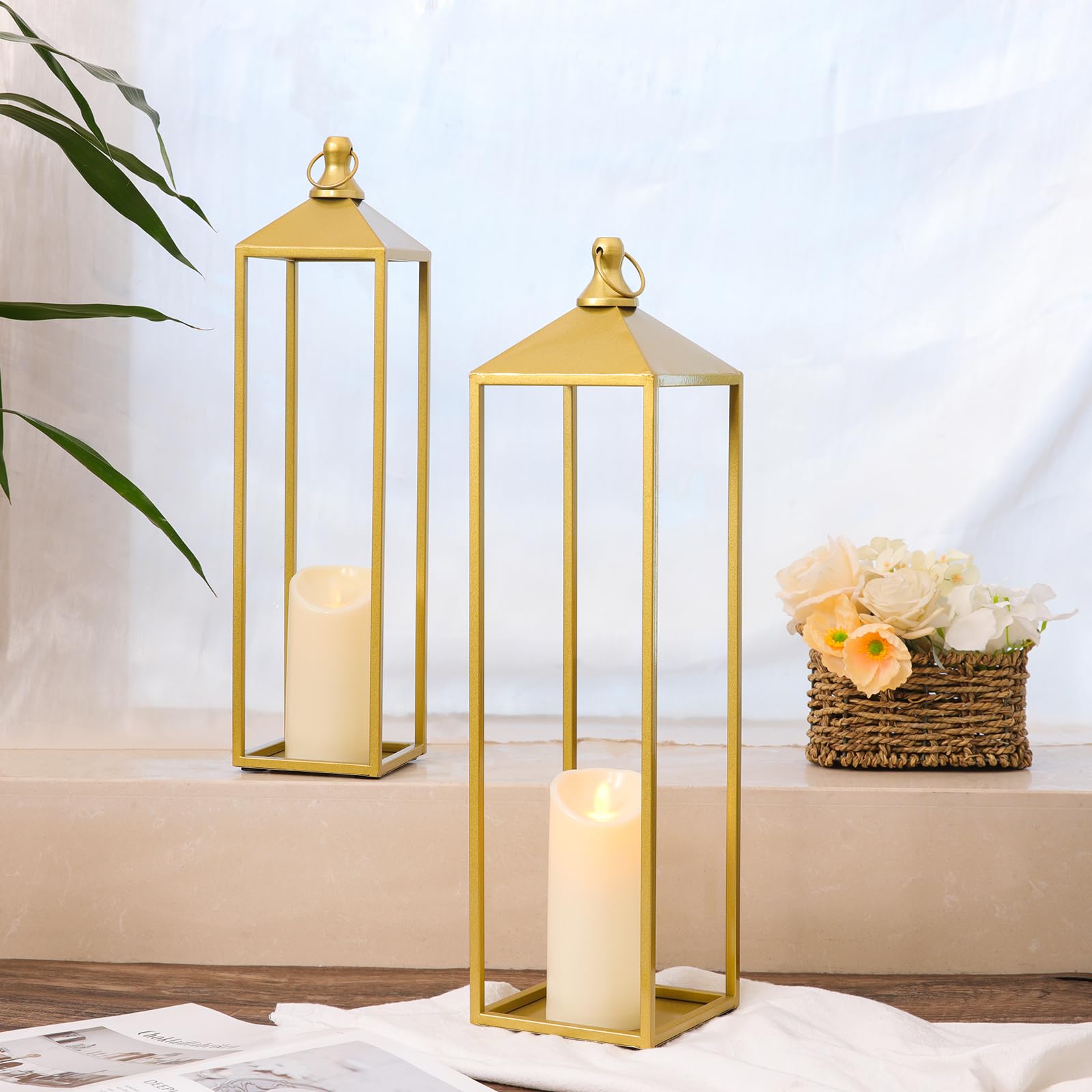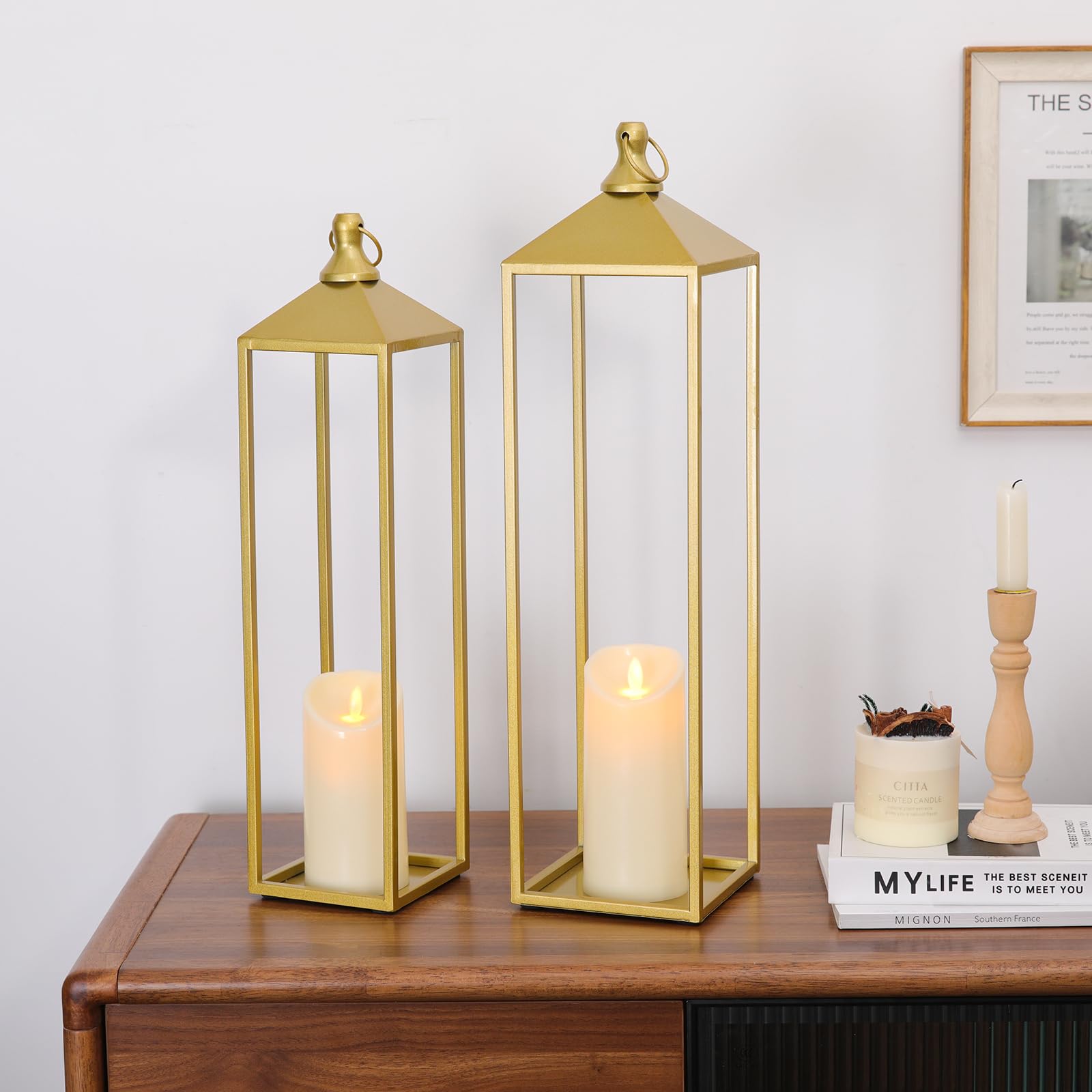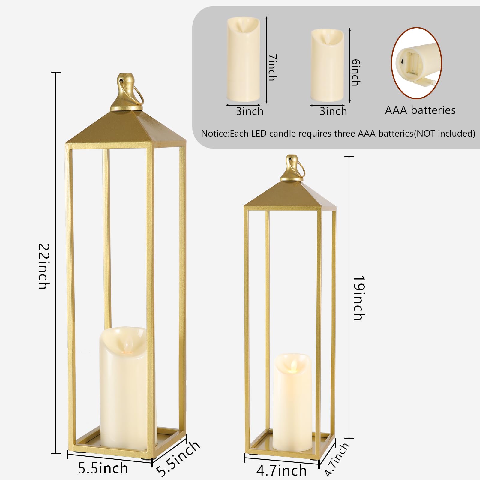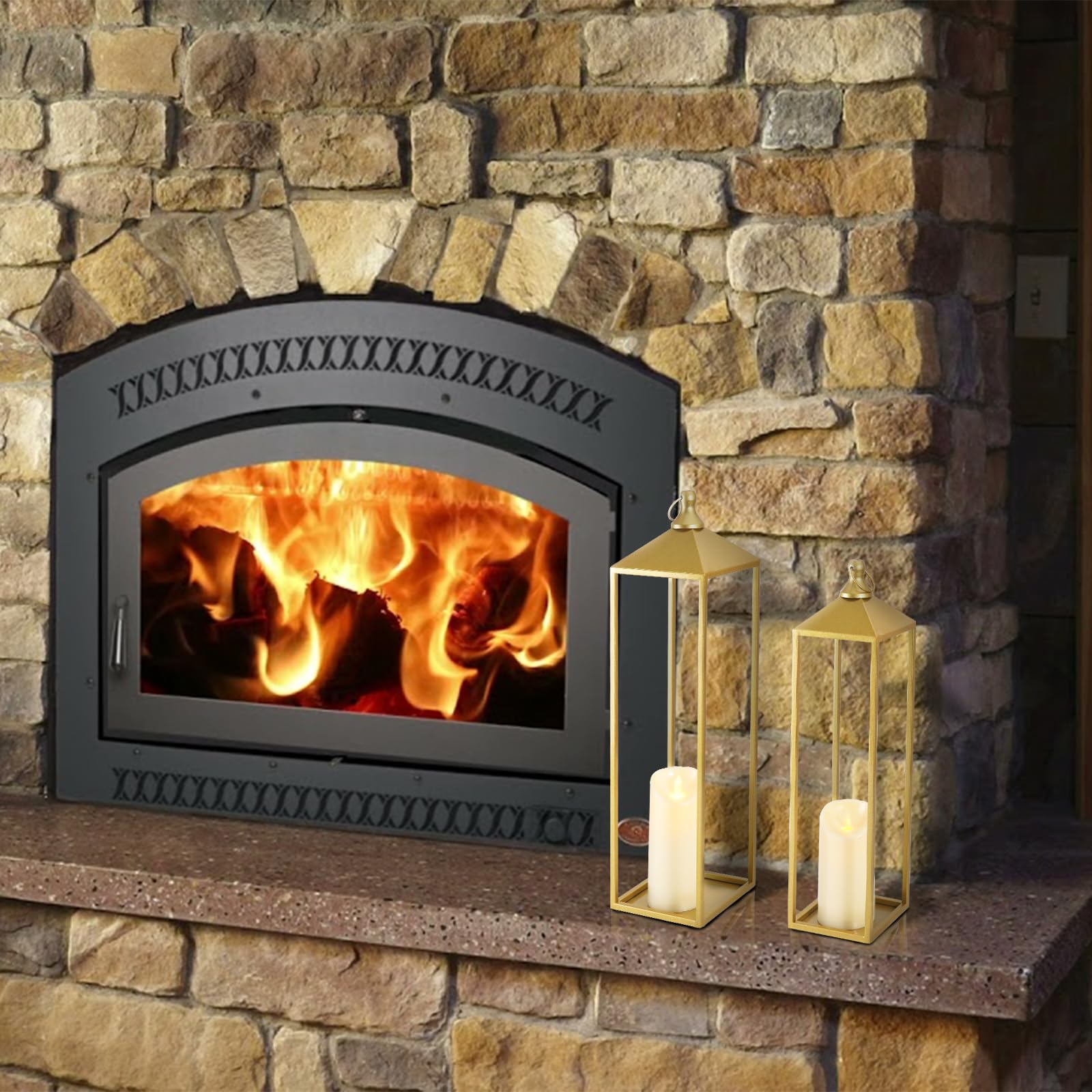 Extra Large Size: Set of 2 large decorative candle lanterns are the perfect pairing with size variety, the big one is 5.5*22, the small one is 4.7*19. Varied sizes create a visually captivating display, making them great for mantle, fireplace, front porch, patio