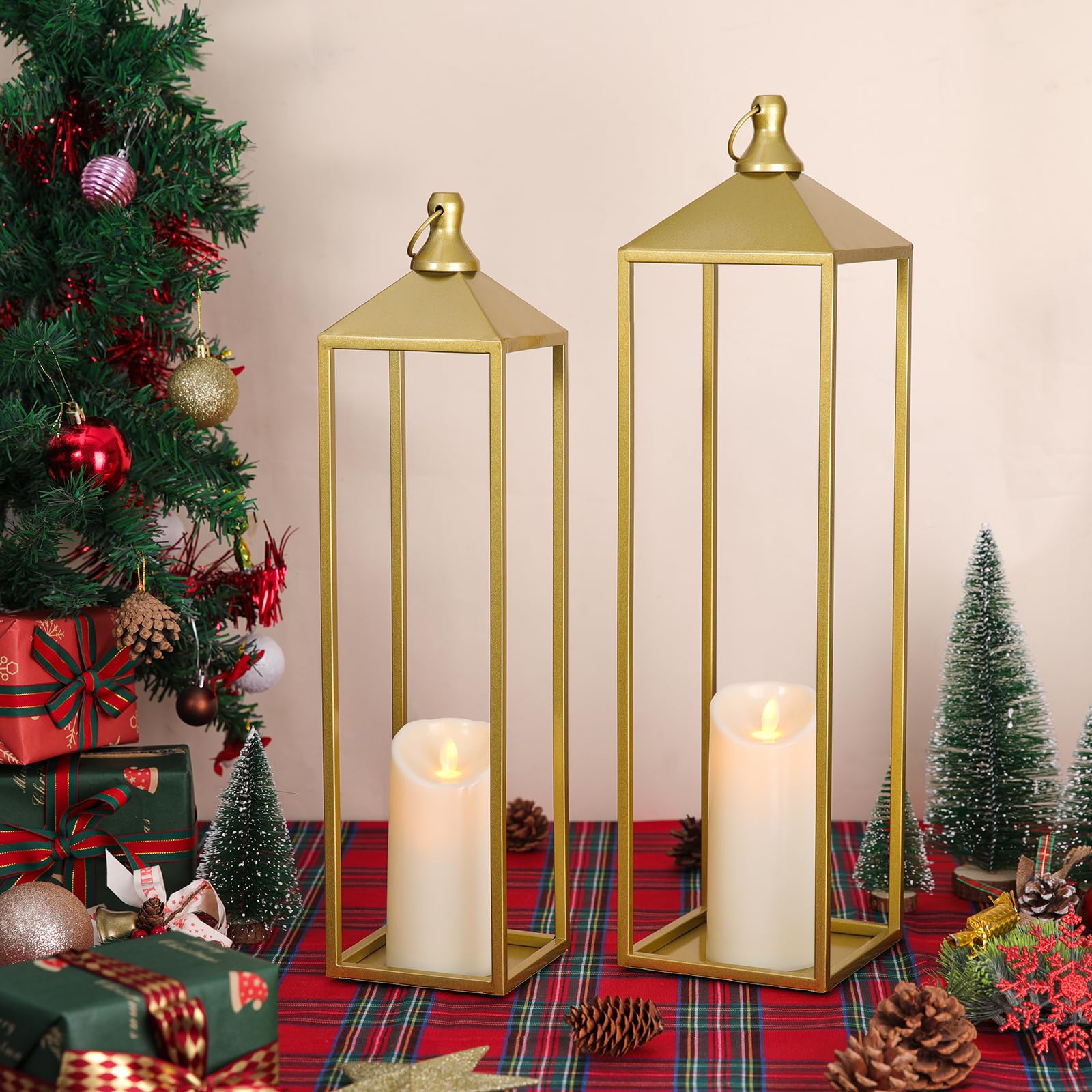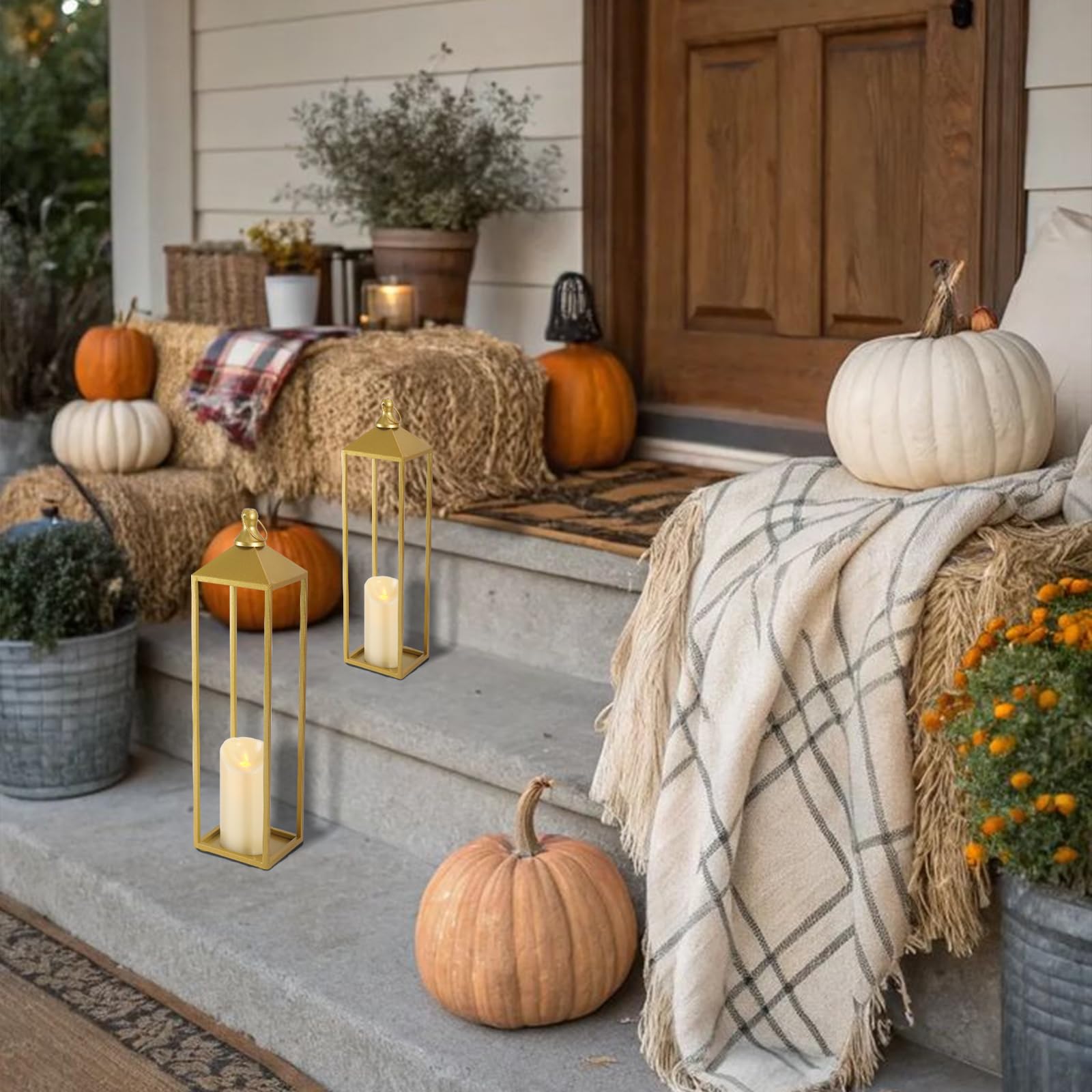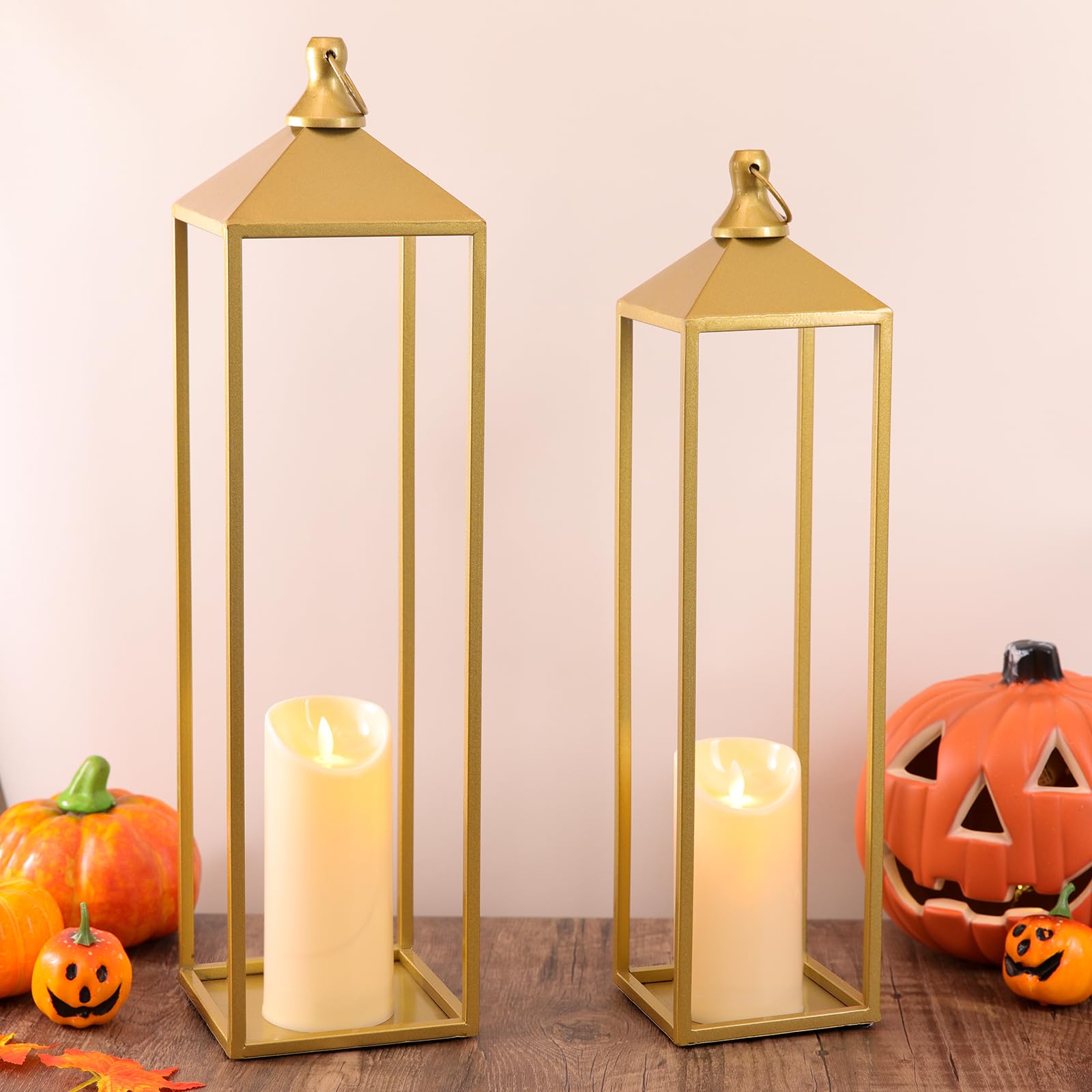 Muital-situation Application: Whether you want to create a warm and cozy atmosphere in your home (living room, bedroom, dining room, fireplace) or a romantic atmosphere in your patio or garden, these 2pcs gold lantern with flameless candle lights in different sizes will satisfy your needs. In addition, they are great gifts for Christmas, Thanksgiving, Halloween, housewarming or birthday occasions