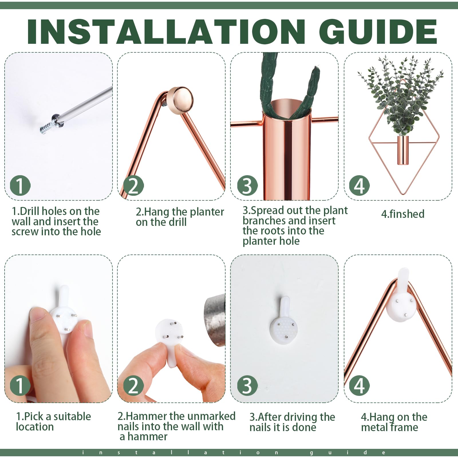 Simple and Generous: the geometric wall hanging vase is designed in triangle and rhombus shape, coordinate with rose gold color, the collision of metal iron and flower, its simple design let it look elegant and generous, and is suitable for a variety of decoration styles, such as modern style, minimalist style, rustic style and more
