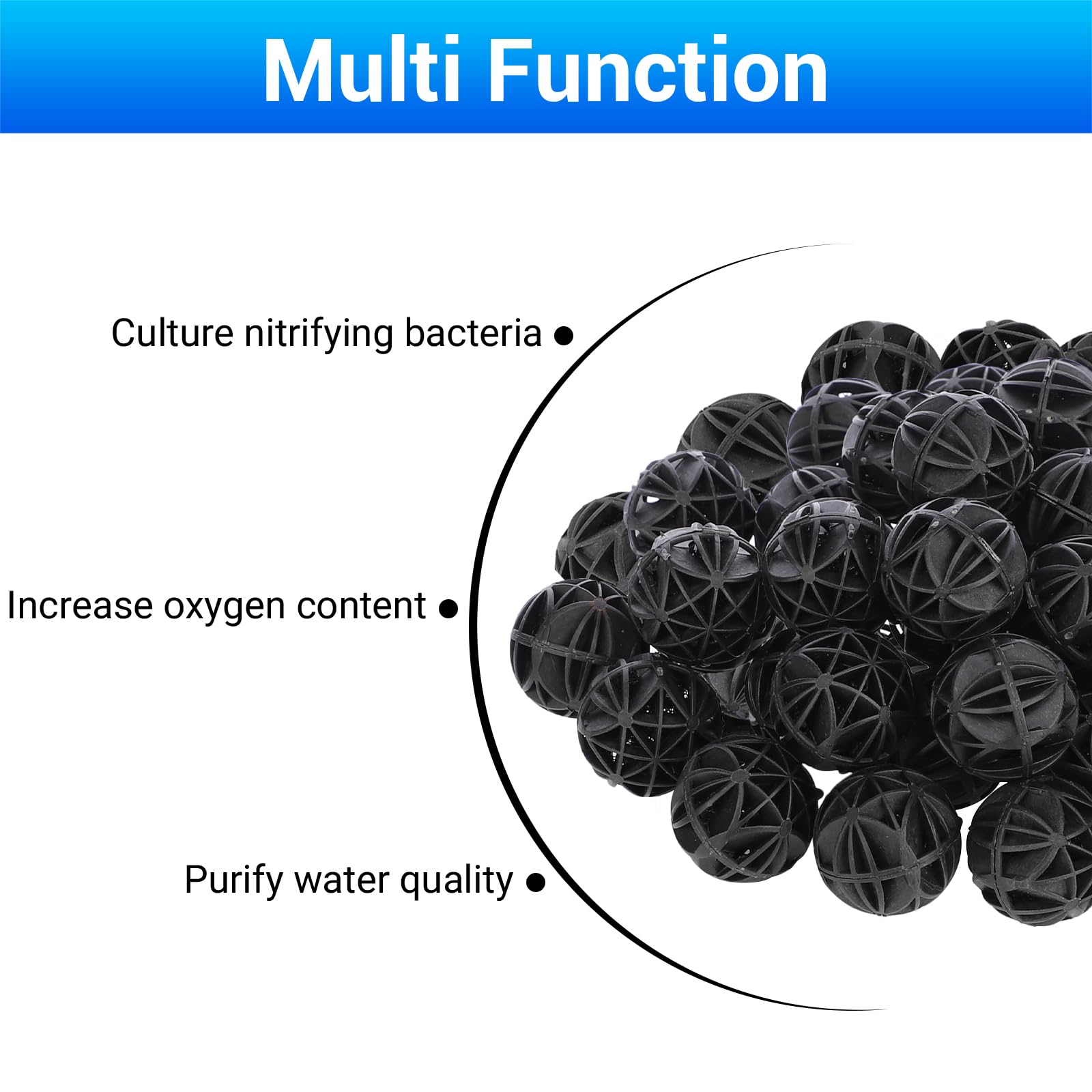 GREAT 1" AQUATIC BIO BALLS: The 1" black bio balls are the suitable size for any aquariums or pond filter system. Made from high-quality materials, our pond filter bio balls are solid enough for years use. Within a particular space in the filtration system, our 1" small bio balls can provide more surface area for beneficial bacteria to grow than large size ones, which helps to keep our water clear.