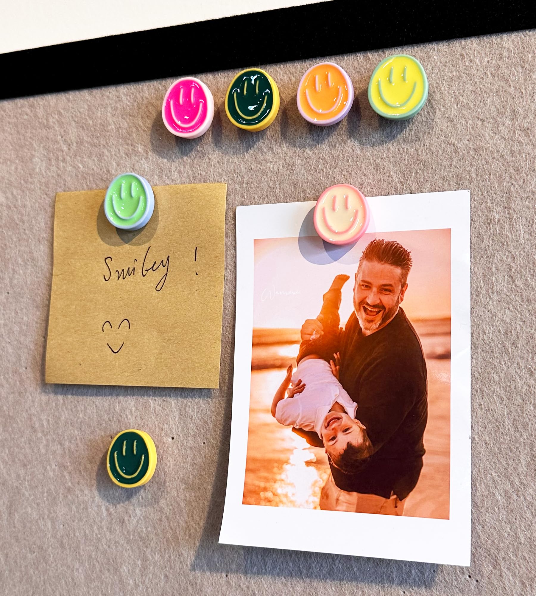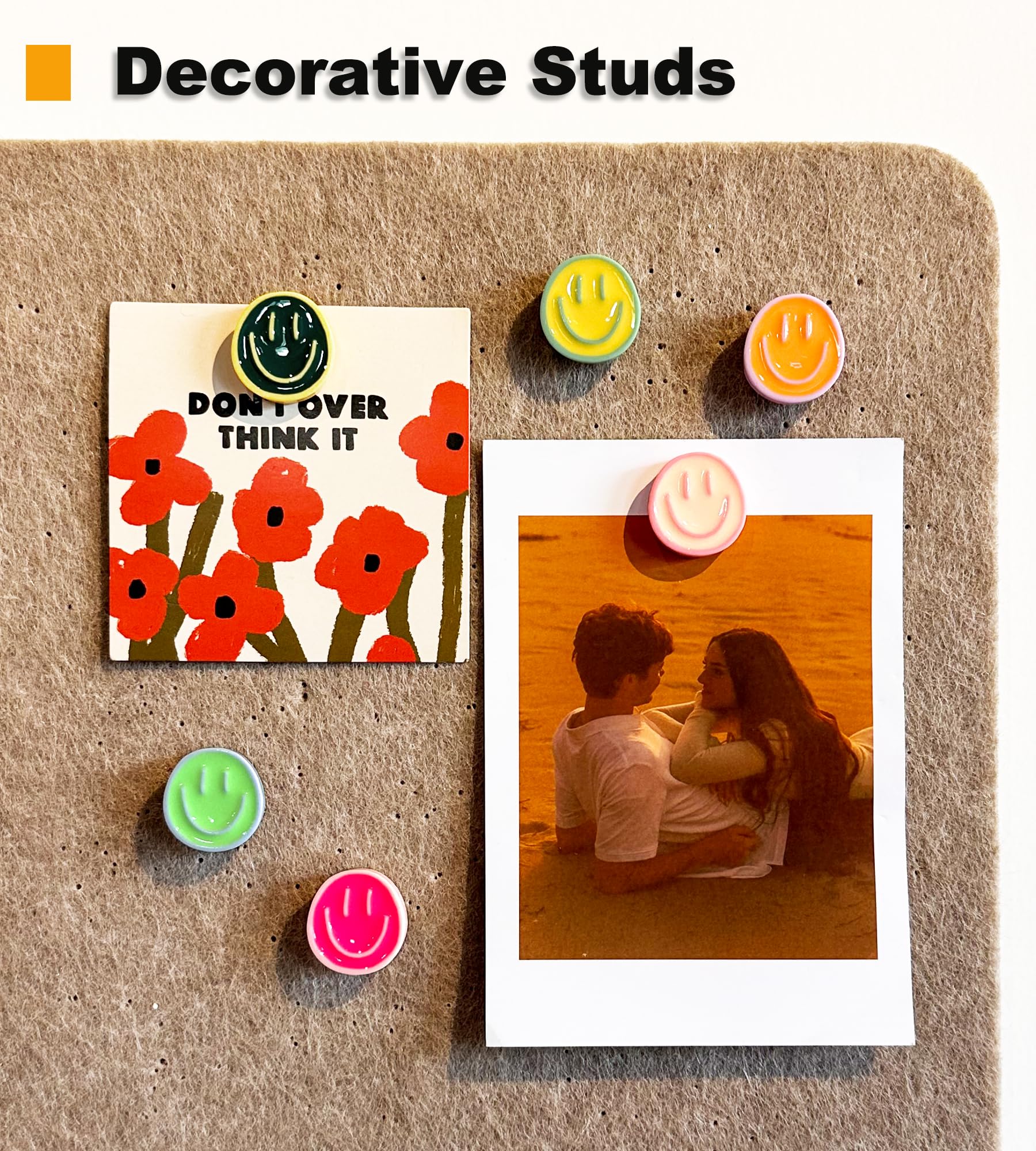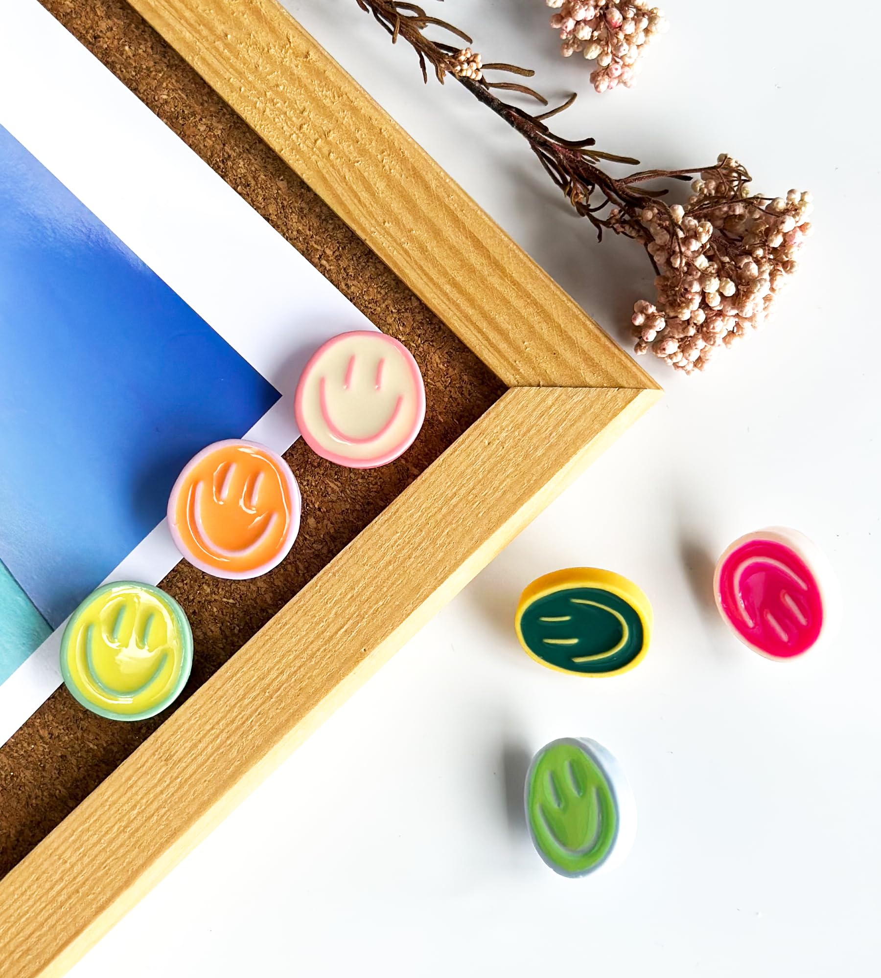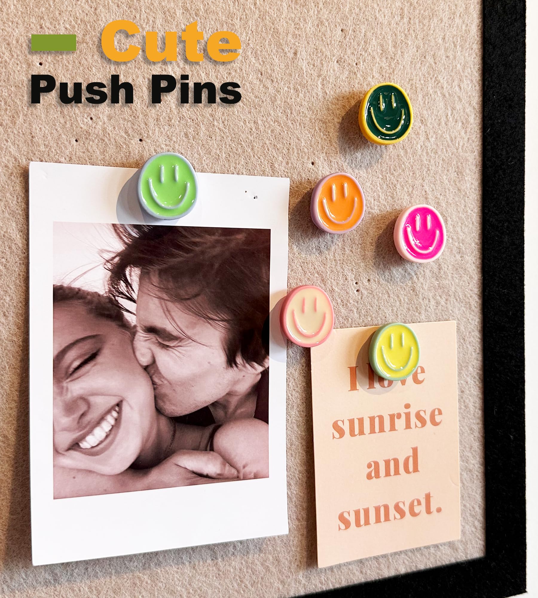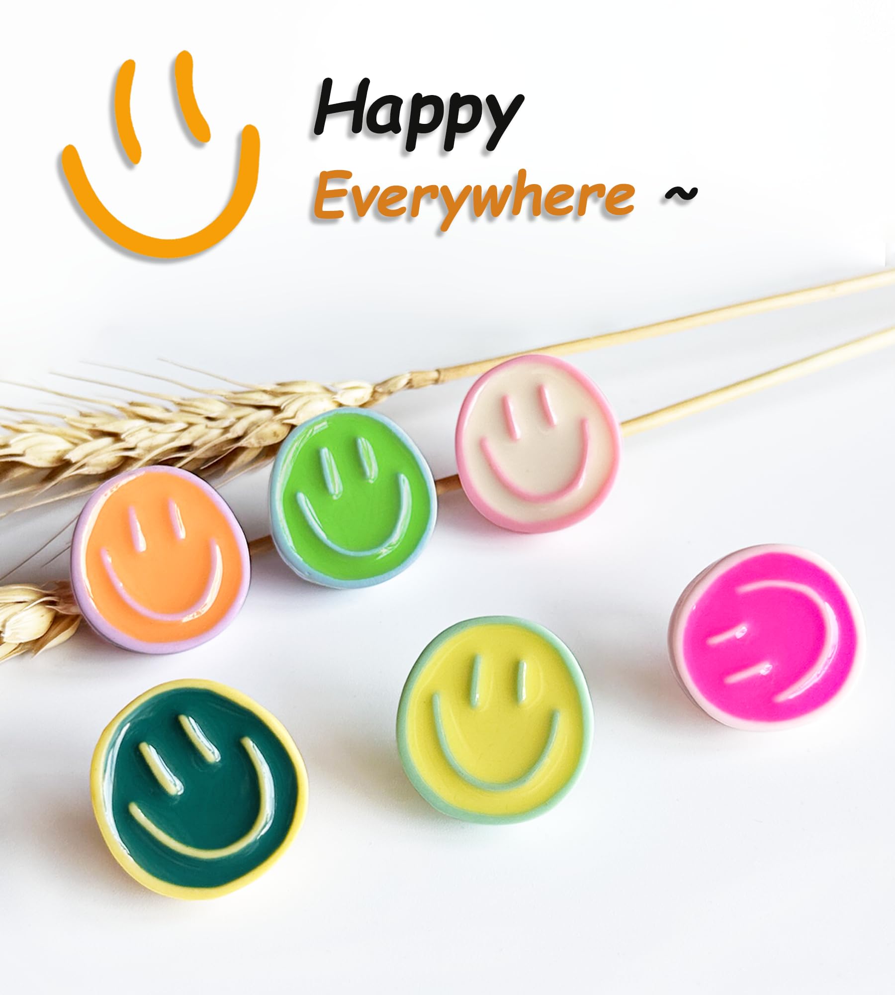【SET QUANTITY】 These smiley face decorative push pins, total 24pcs, 6 colours, 4pcs of each colour. Each smiley face is glossy crafted, no fading or cracking, accompanying your good mood every day.