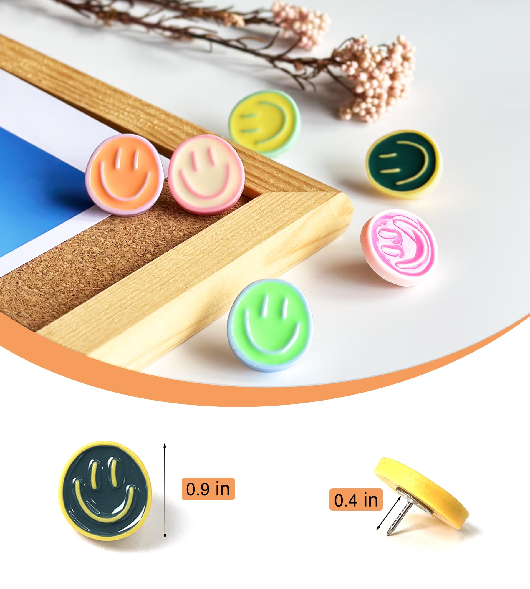 【Decorative】Our smiley face pins are not only perfect for adding decoration, but they also make it easy to hang files and notes on cork boards, foam boards, calendars and maps. These pins provide a firm hold and will not fall off even after extended use.
