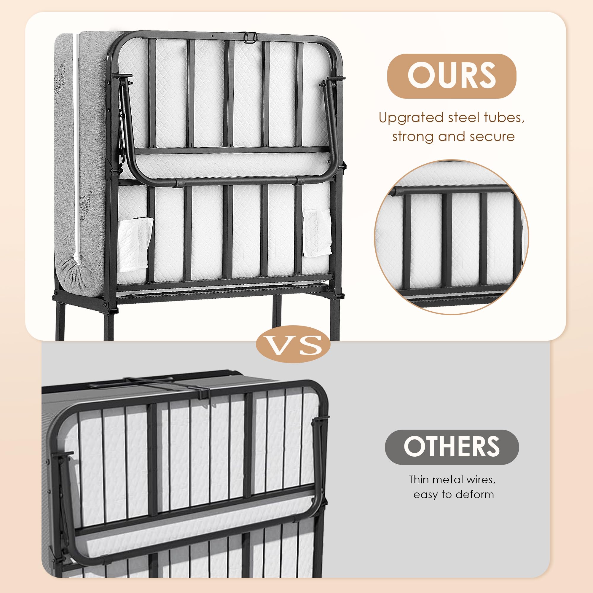 Sweet Dreams on the Go: Experience unparalleled comfort with Decofy folding bed, featuring a luxurious thick mattress; Engineered with a high-density foam base and a cozy memory foam layer for a restful night's sleep; Important Note: Your mattress arrives vacuum-sealed; Please allow up to at least 48 hours for it to fully decompress and reach its optimal comfort and support levels after opening