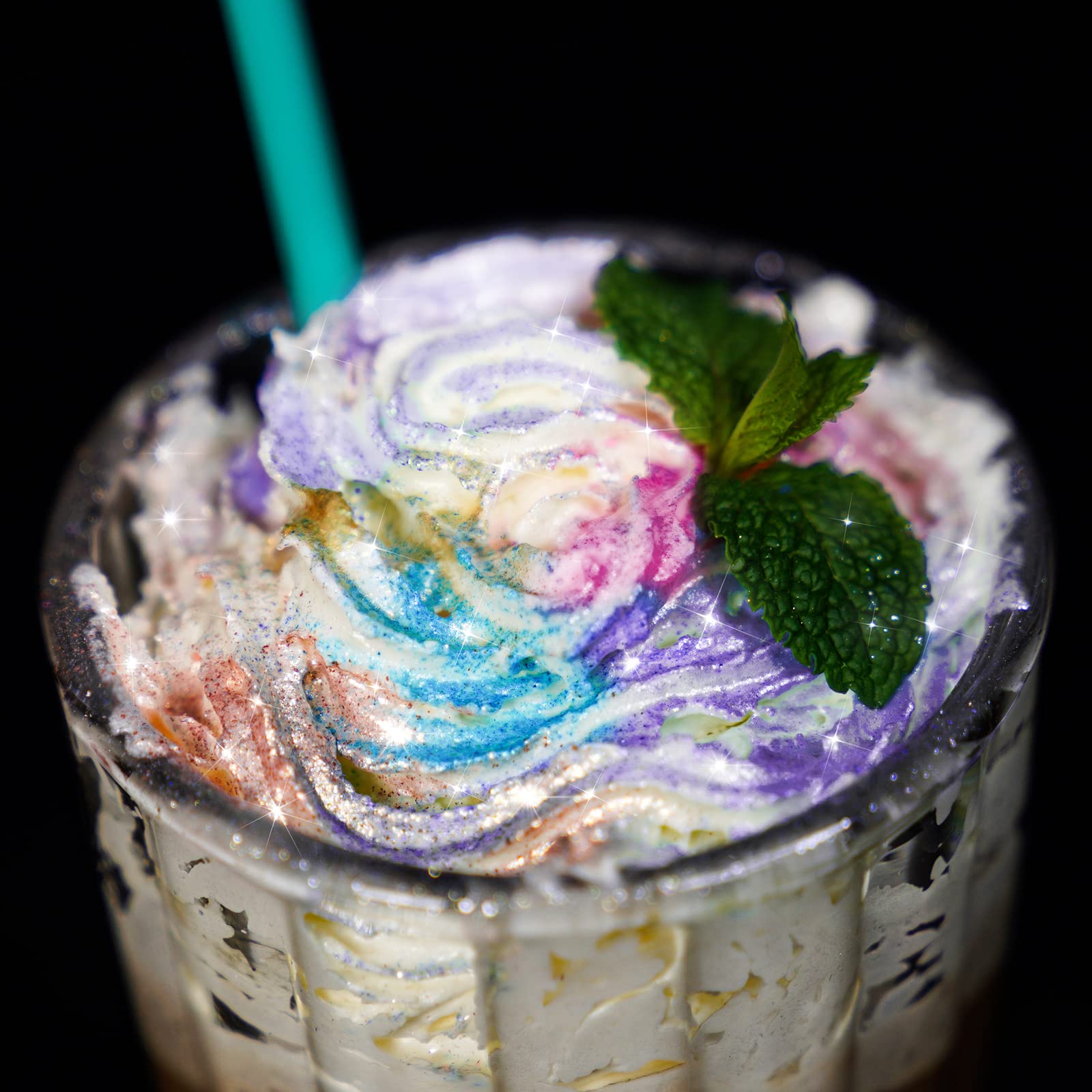 ✔️【Use with Brews】Food-grade glitters are so fun and simple to use with brews. Add one pinch or two directly to your favorite beverage, mix it with cocktail syrups, juices, liqueurs, liquors, or spirits. Use a clear glass instead of opaque containers so that the liquid looks so cool, especially when you move it around in the glass with a stir. A tiny amount of dust can create a great visual spectacle, and clear liquids offer a great blank canvas for glitter to show off the best ability.