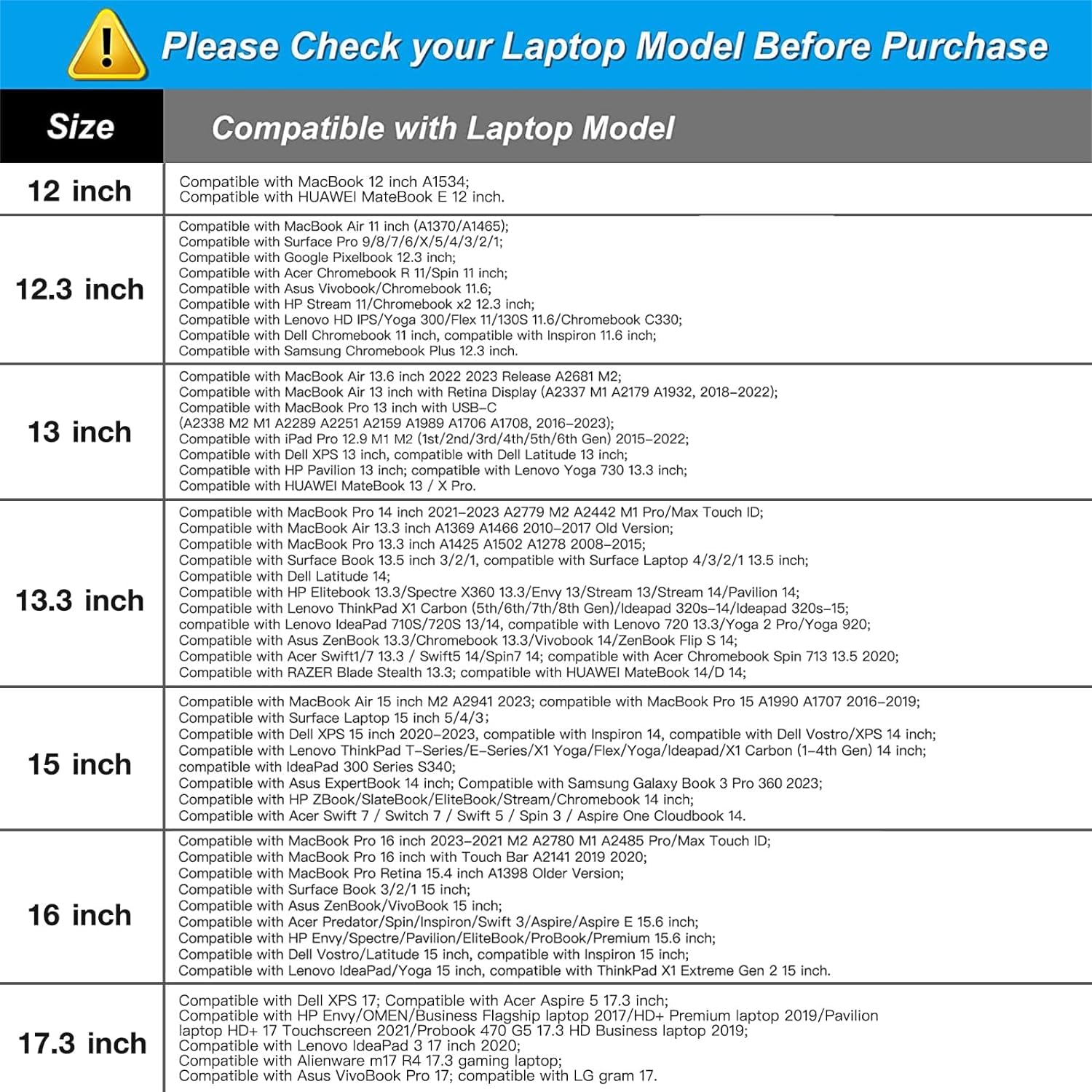 Compatible with HP 14 Laptop/14 Chromebook Laptop/Stream 14/EliteBook 840/Chromebook x360 14/Pavilion x360 14; Compatible with Dell Inspiron/Latitude 14; Compatible with Lenovo IdeaPad Slim 3 2024 14/ThinkPad E14 Gen 5 14/Gen 12 ThinkPad X1 Carbon 14/Chromebook S330/Flex 14/ThinkPad 14/Yoga 930; Compatible with Acer Chromebook 14/Spin 3/Swift 3/Spin 5; Compatible with ASUS Chromebook CM14 14/E410 14/VivoBook 14/ZenBook 14; Compatible with jumper Laptop 14 and most 14 inch notebook computer.