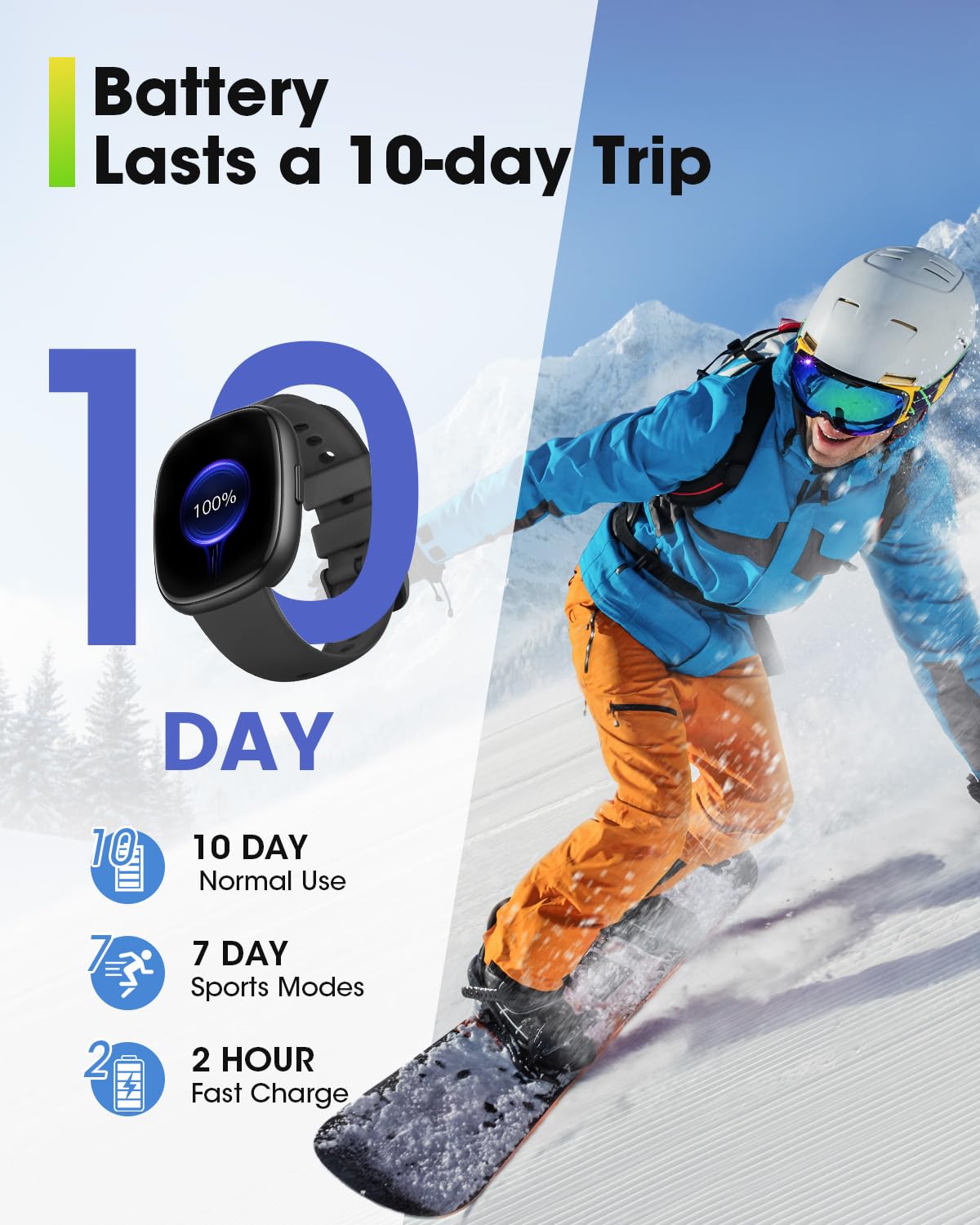120+ SPORT MODES AND IP68 WATERPROOF: Achieve your fitness goals with over 120 sport modes (snowboarding, running, trail running, cycling, swimming, etc.) tailored to your workout. Smart watches for men record calories burned, number of steps, training time and distance for a variety of activities. Smart watches for women are also water-resistant up to IP68, making it your ideal training partner