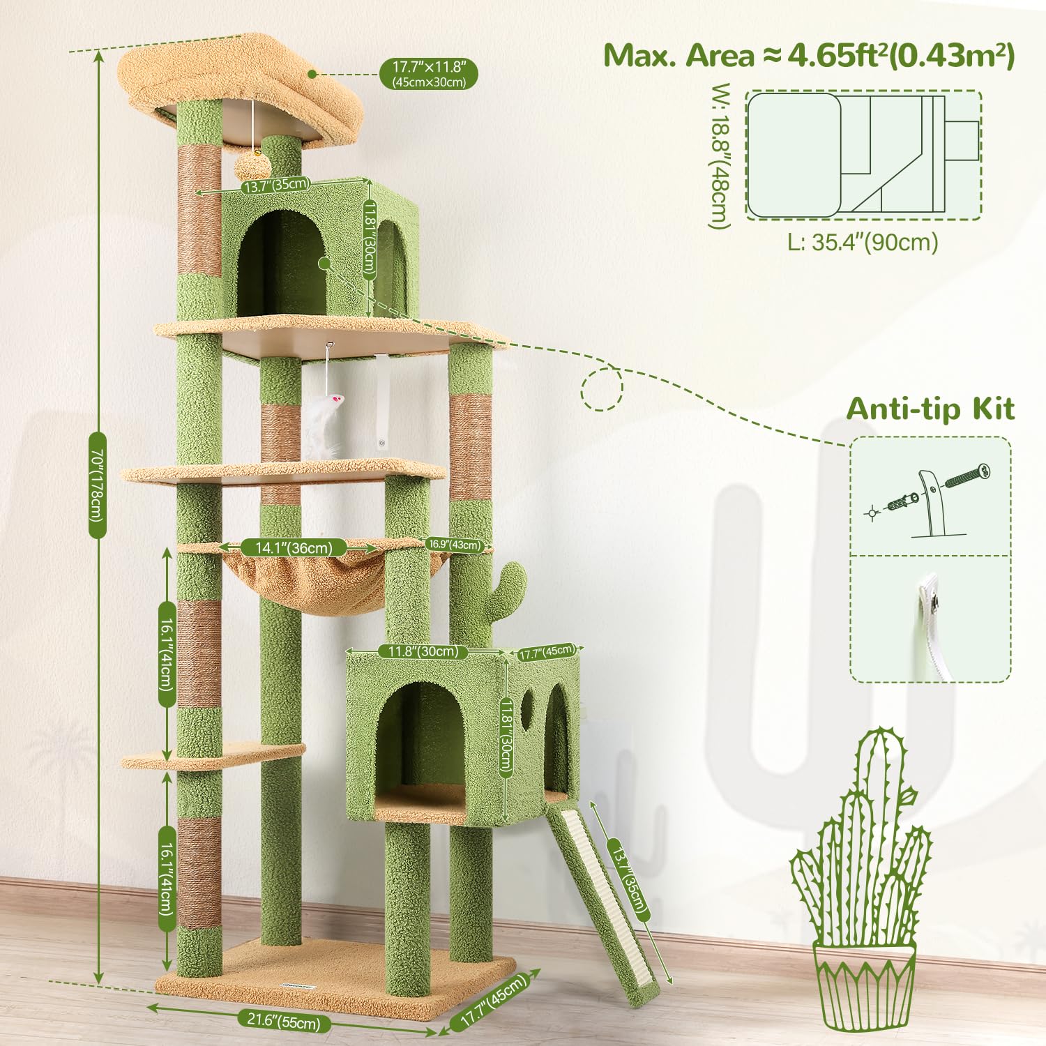 ENLIVER YOUR HOME - Transform your home into a lively and vibrant environment with this 70 inch tall cactus cat tree tower. Its unique design not only mimics the growth of natural plants, but also adds a touch of natural color and tranquility to your home