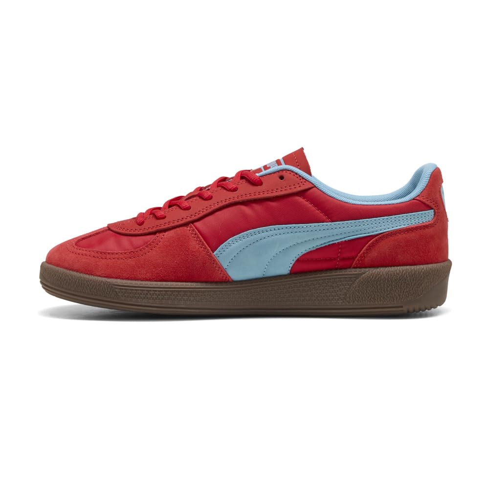 Description Straight from the archives, it’s the PUMA Palermo. This classic terrace shoe is revived today with its signature T-toe construction, plus extra-bold colorblocking and plush materials. Its design builds on PUMA’s heritage within football, while appealing to today’s sneakerheads and terrace fashion mavens. This execution features a suede base and leather formstrip with foil printed PUMA branding.