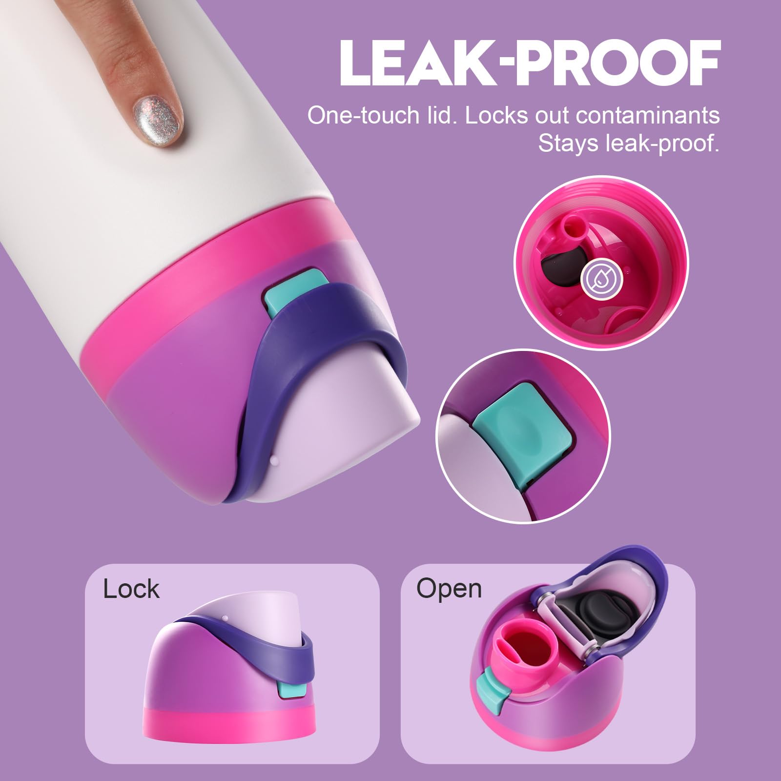 【Leak-Proof Design】Engineered with a precision seal, this lid effectively prevents leaks and spills. The secure closure allows you to confidently carry your bottle in a bag or backpack, ensuring worry-free portability.