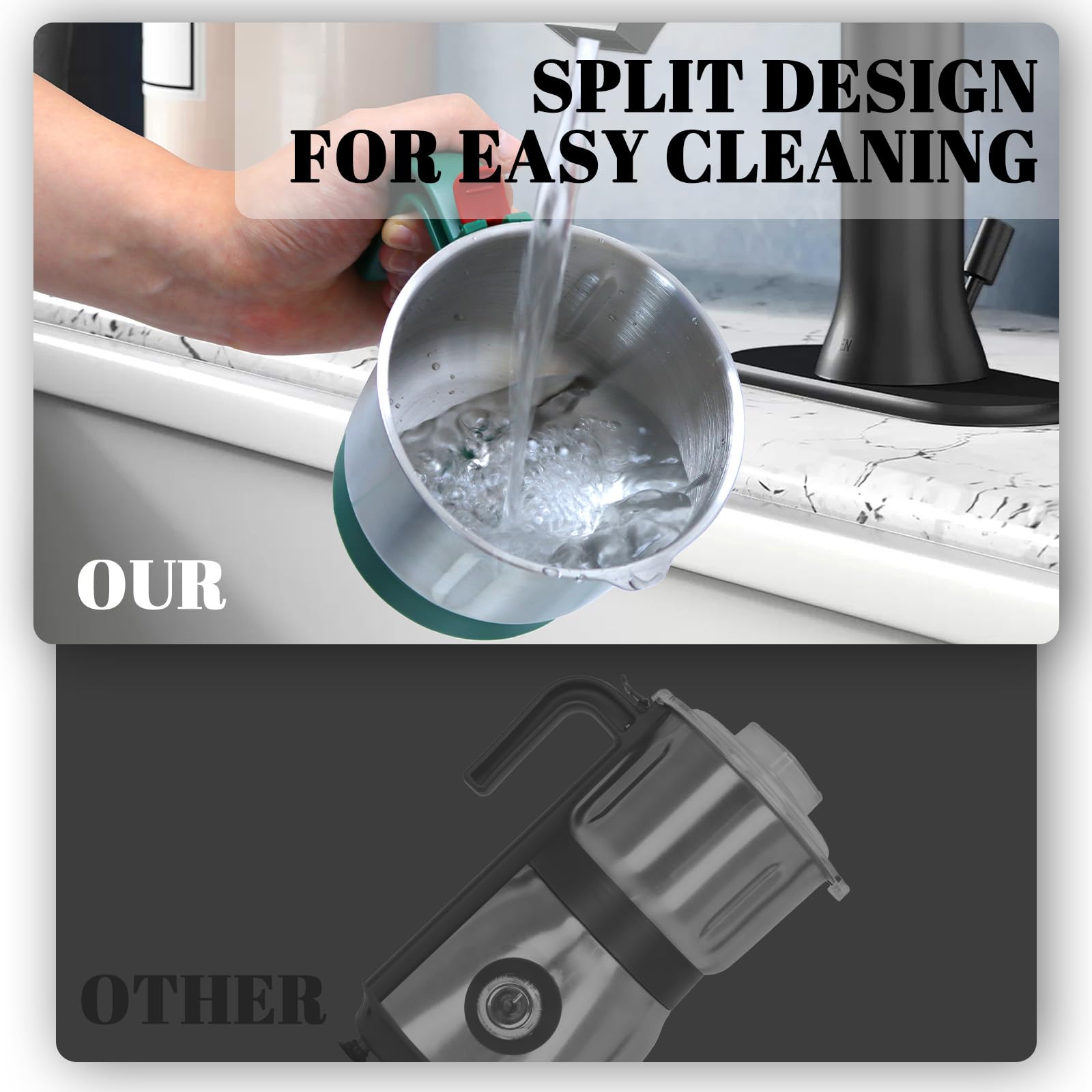 3. Emphasize Versatility & Safety: This versatile grinder is perfect for dry ingredients. Grind spices, nuts, grains. For optimal performance, please allow the grinder to rest for 30 minutes after 15 minutes of continuous use.