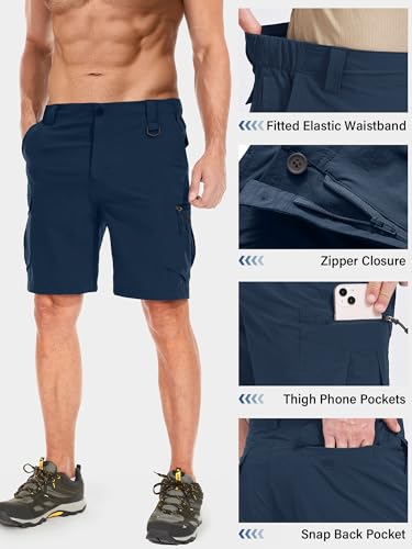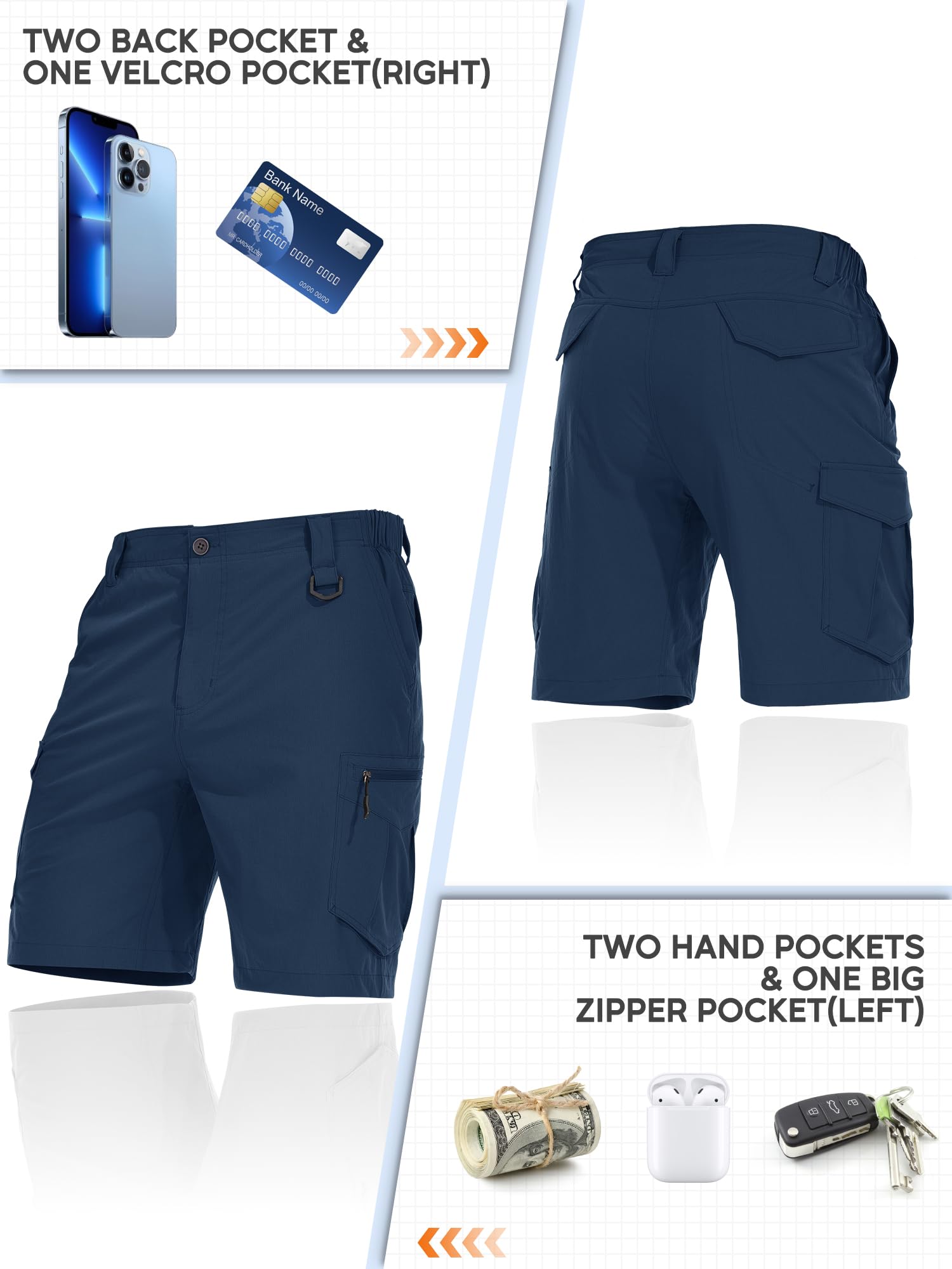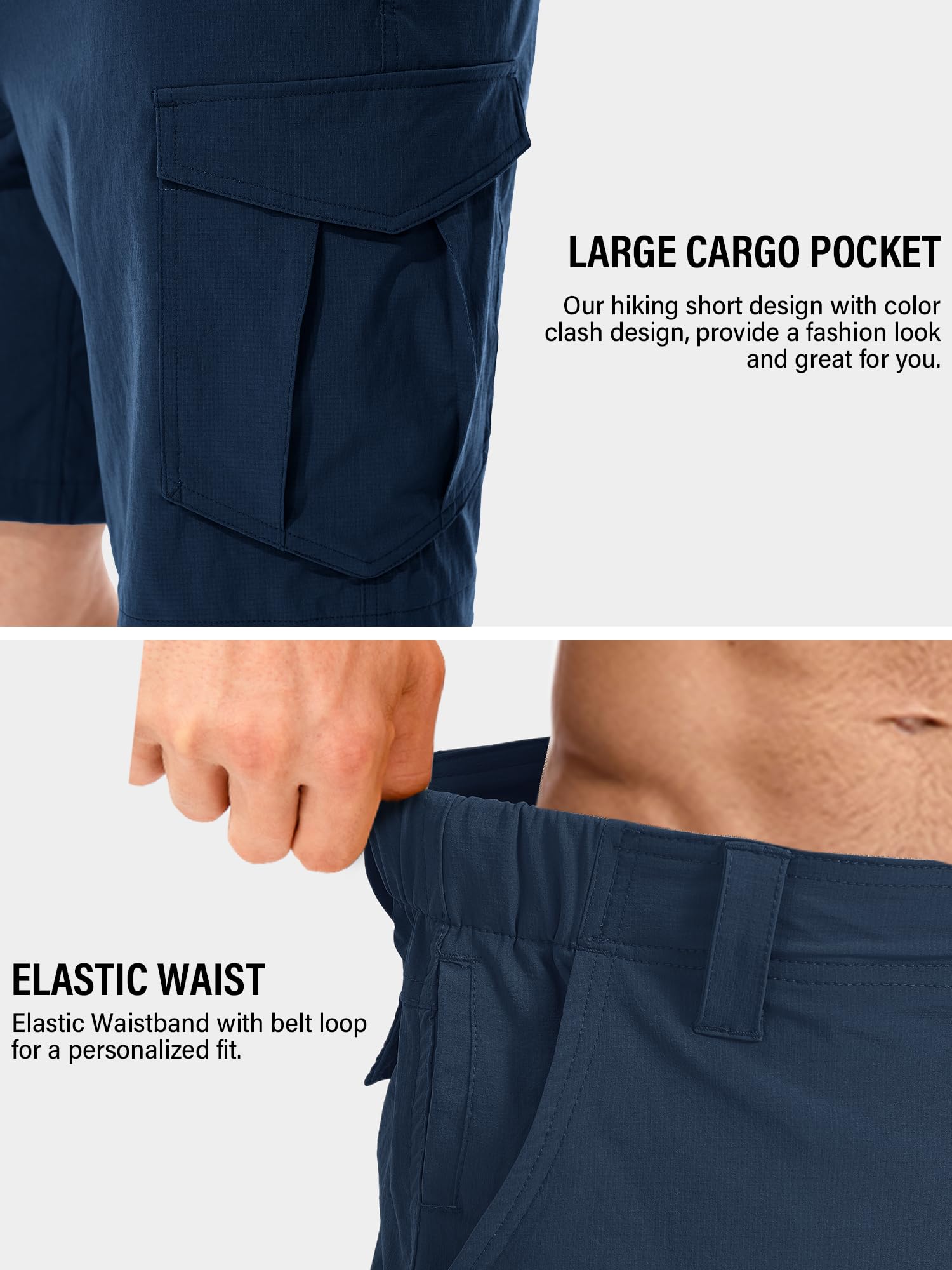 Expandable Waist Cargo Shorts: Designed with a elastic back waistband, button closure with zip fly and 2'' belt loop for a personalized fit, offers a security support to ensure you move-freely and bends easily.