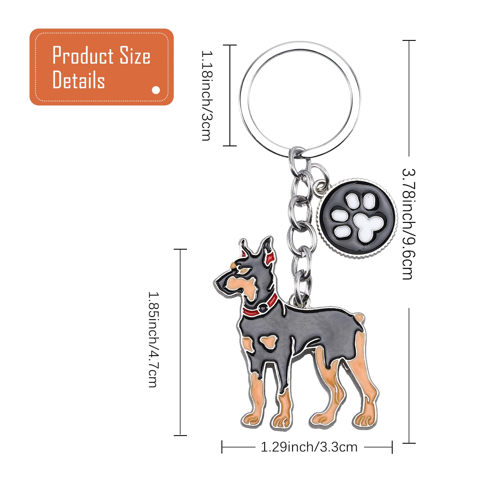 Size: These puppy keychains are approximately 3.78 inches long overall, 1.29 inches wide, and the key ring diameter is 1.18 inches.