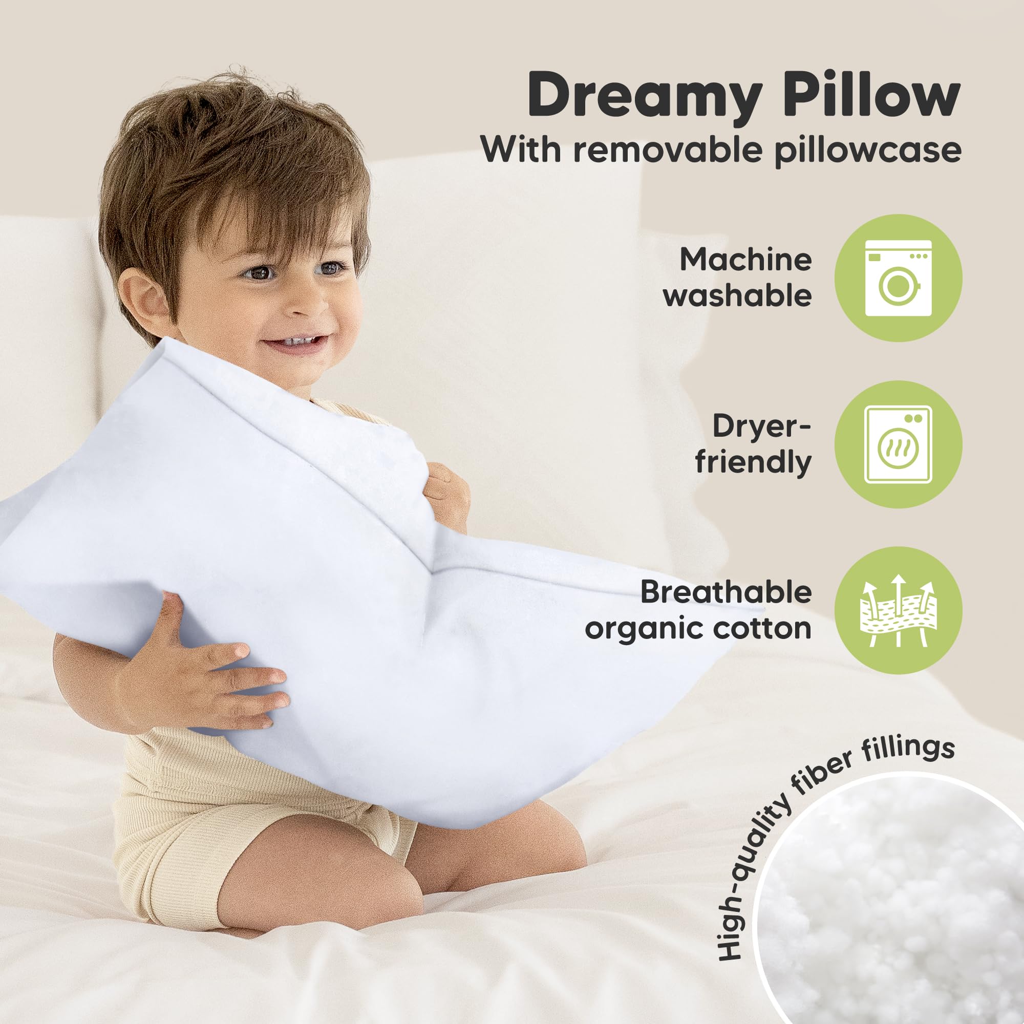 13"x18" Ergonomically Designed Toddler Pillow with Pillowcase - Highly rated by parents around the world, KeaBabies My Little Dreamy Pillow, is designed to provide toddlers, kids with comfortable spinal support for sleep and travel.