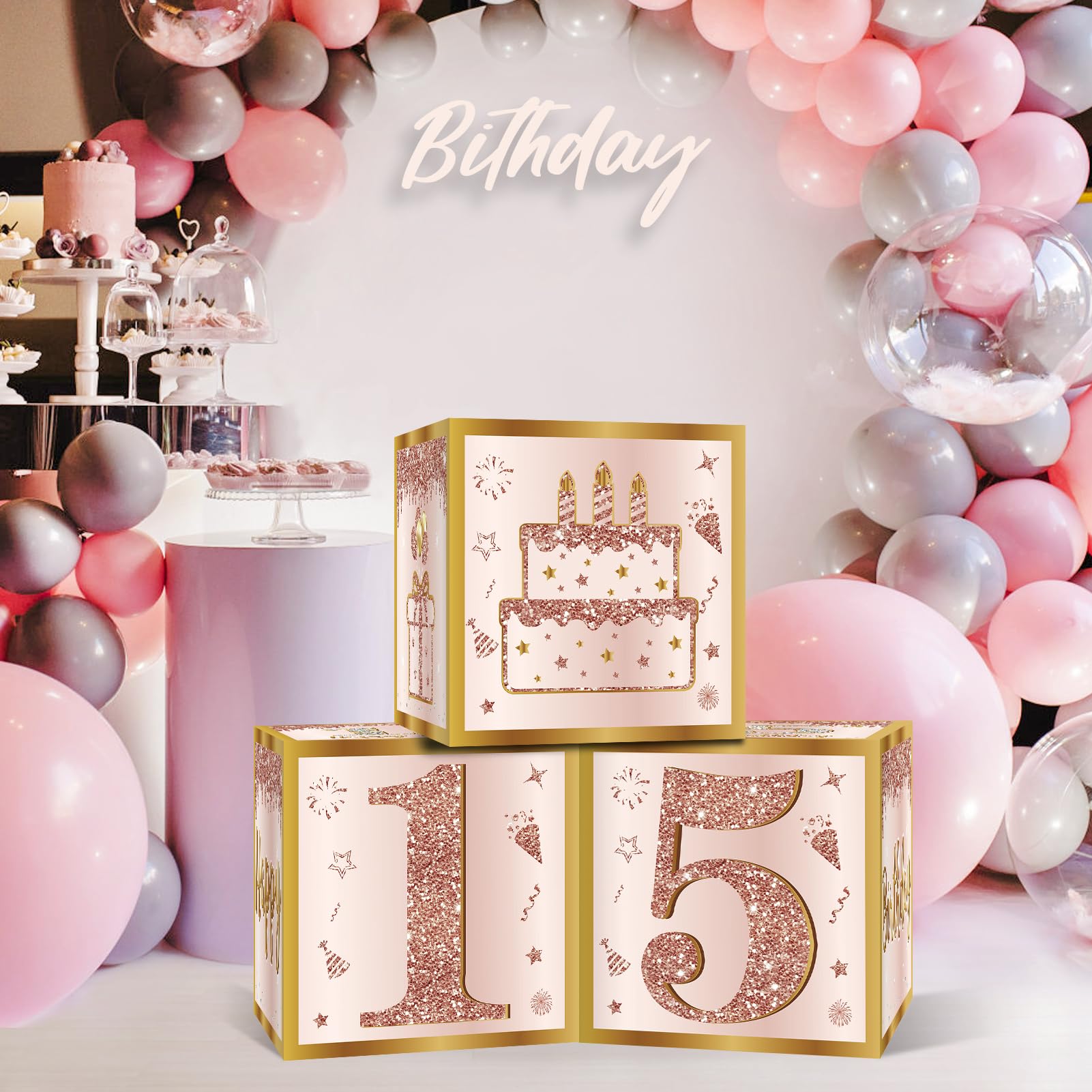 [Widely Used] - Suitable for pink 15 birthday party. You can use 3 boxes to combine into different shapes to put it on such as cake stand, floor, living room, etc, To attract the attention of guests!