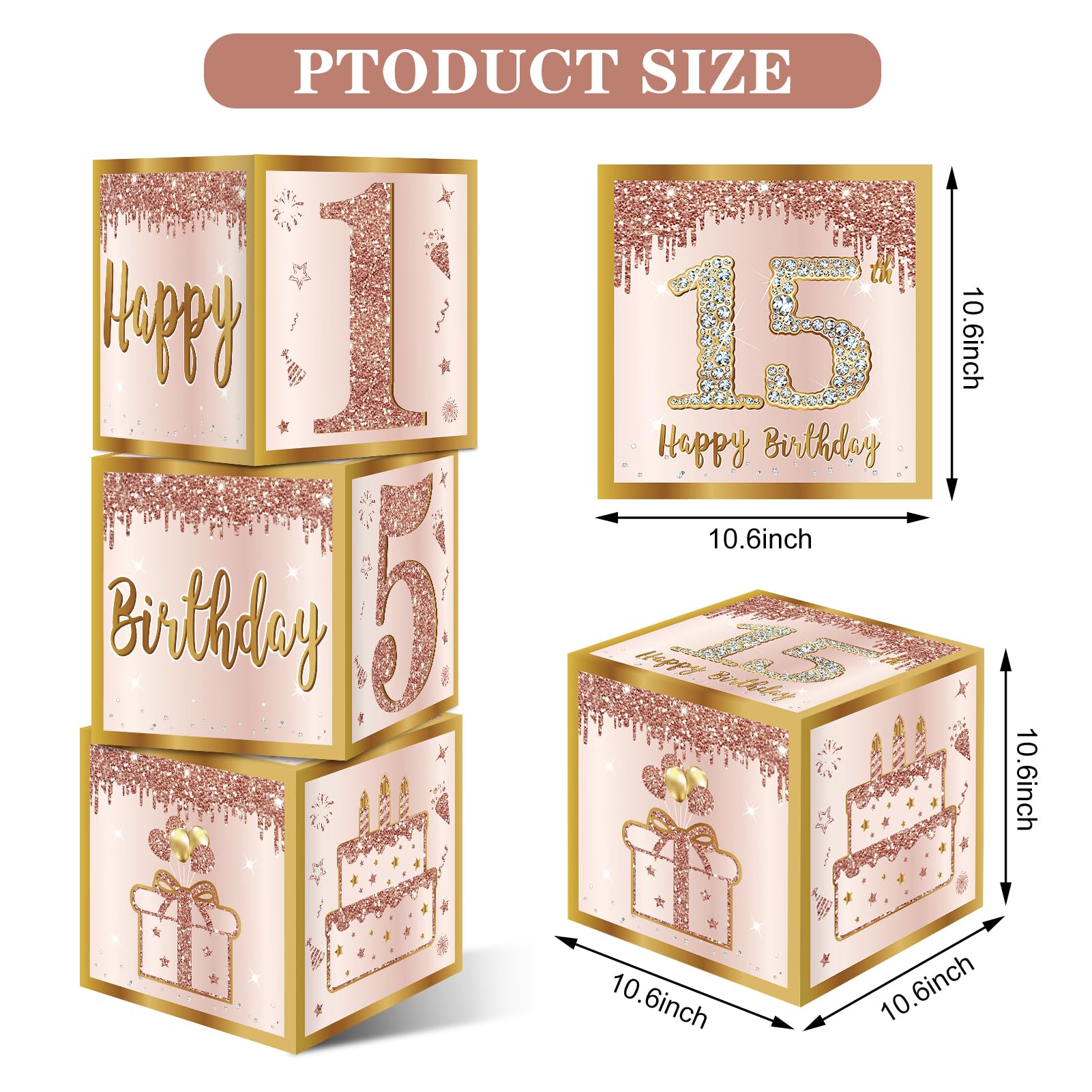 [You Will Get] -3 Pcs pink rose gold 15 birthday balloon boxes, 10.6 inches cube, enough to decorate your 15th birthday party, Make great memories for you and your family! (Note: This set does not include balloons)