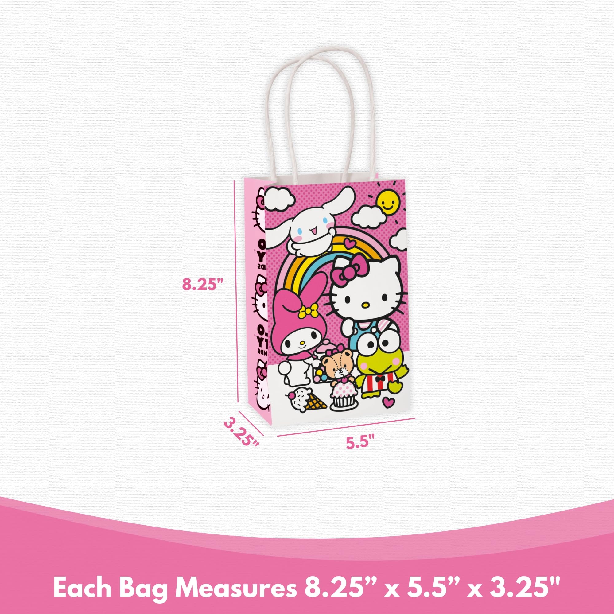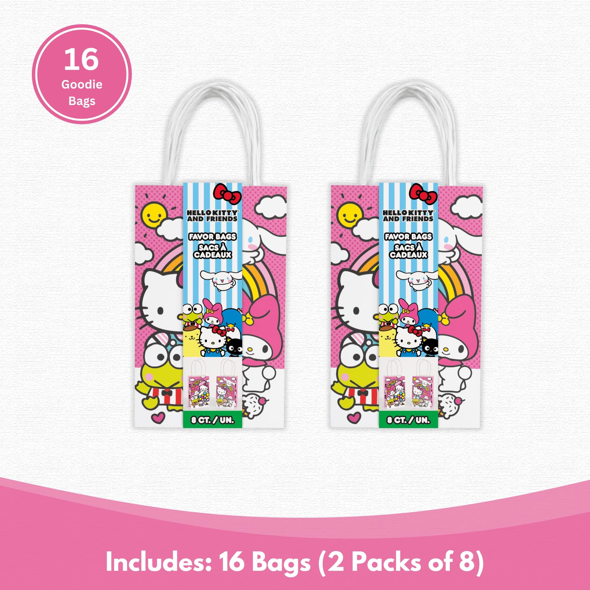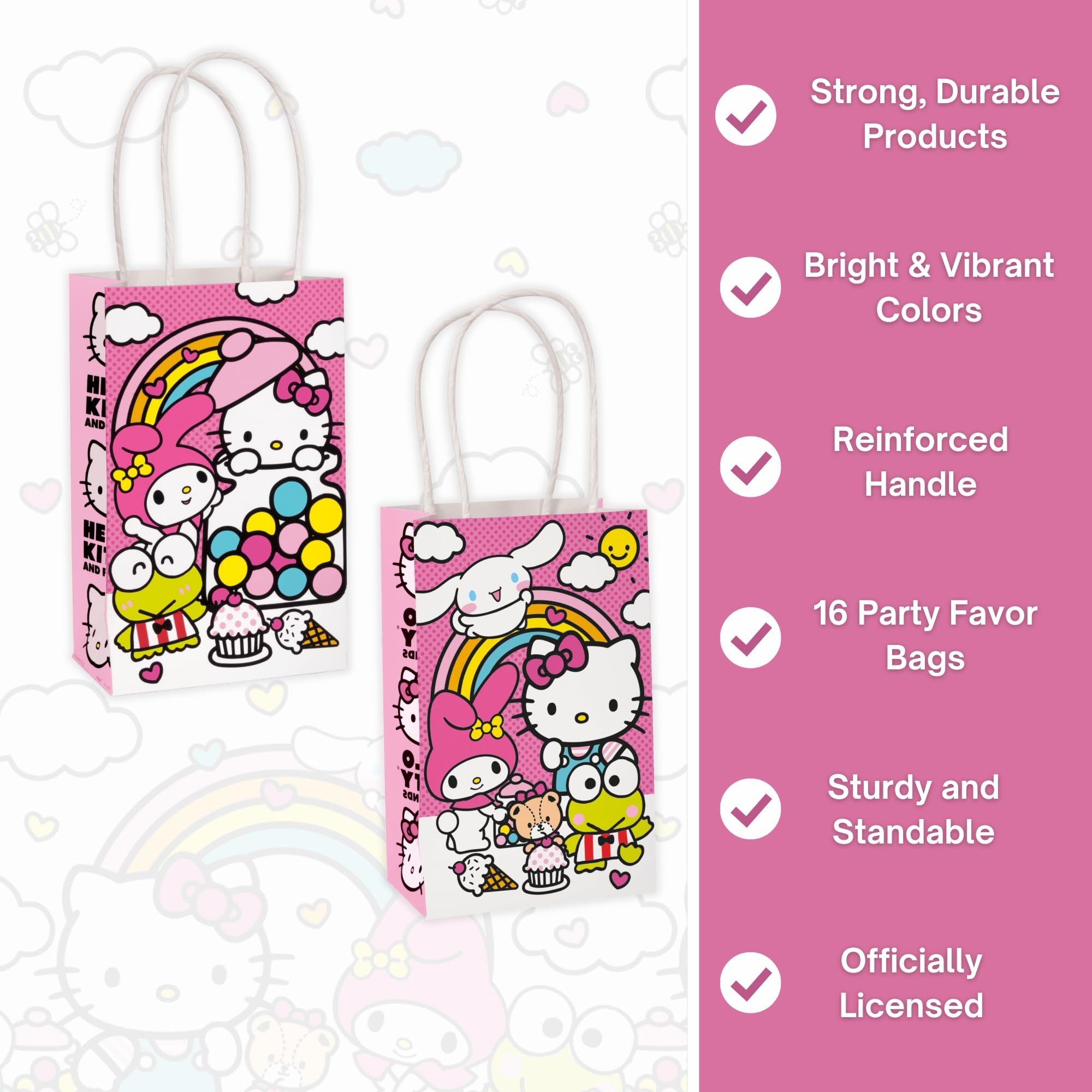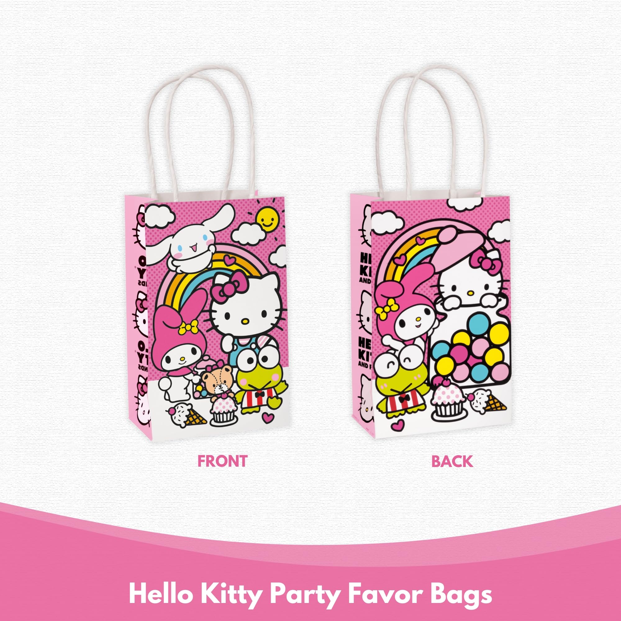 Includes: This pack includes 16 Hello Kitty party bags, so you'll have enough to accommodate all your guests. Hello Kitty party bags are made of paper and 5.25-inch wide by 8.75-inch tall size, there's plenty of room for all types and sizes, candy, and take-home treats.