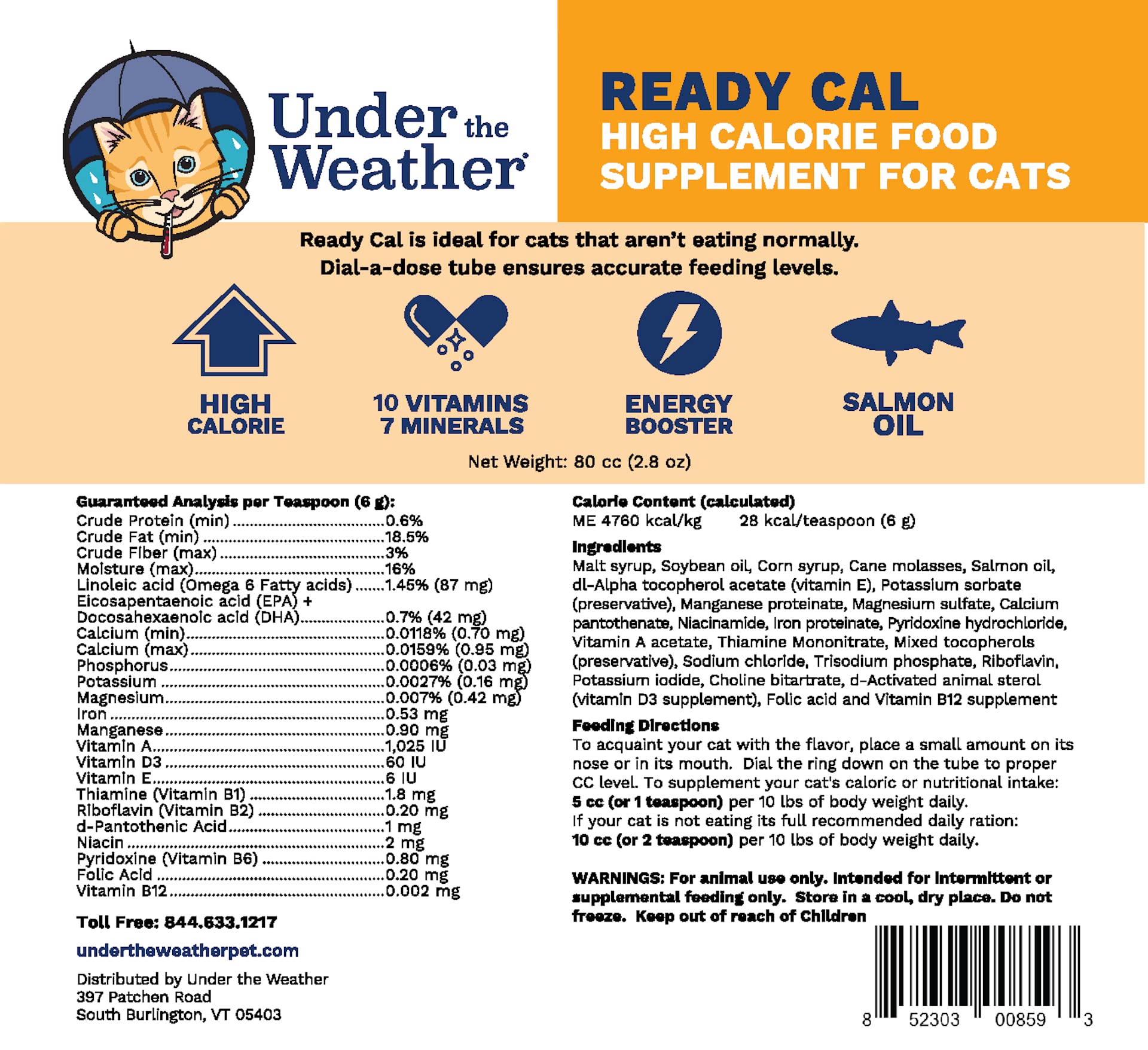 Energy Booster - Vitamins, minerals, carbohydrates, and omega fatty acids are essential nutrients to boost your cats weight, appetite and energy.