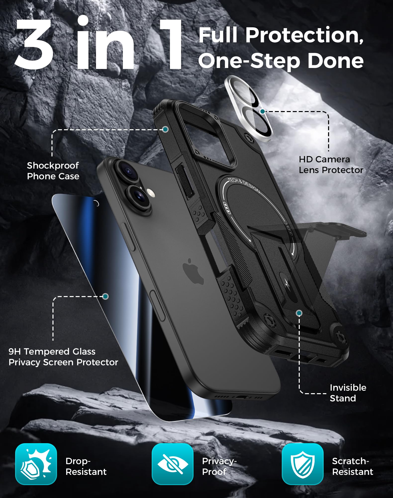 3in1 Comprehensive Protection for iPhone 17: Comes with a 26 degree anti-peep front screen protector, a high-definition transparent camera lens protector and a hard pc phone case for iphone 17, offering 360 degree full-body protection. Ideal for those who are always on the go and need to keep their phone safe from scratches, dust and drops during daily activities, like commuting, traveling or doing sports
