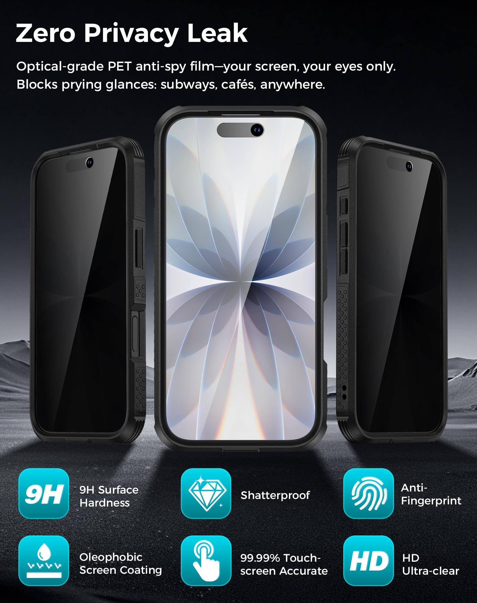 Privacy - First with Anti-Peep Film: Our 9H tempered privacy 17 screen protector with 26 degree anti-peeping technology is a must-have for privacy lovers. Whether you're using your phone in a crowded subway or a busy coffee shop, it effectively shields your personal information from prying eyes, while maintaining 100% screen sensitivity for a smooth touchscreen experience