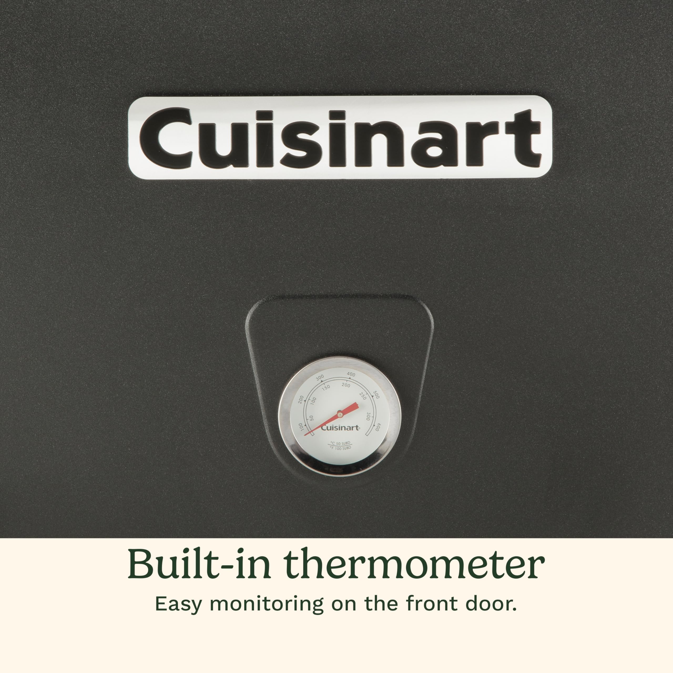Experience authentic smoked flavors without the hassle of charcoal! The Cuisinart 30” Electric Smoker makes smoking easy for both beginners and seasoned BBQ lovers. Set your exact temperature, and this electric smoker handles the rest. With 548 sq. inches of cooking space on three chrome racks, you’ll have ample room to smoke meat for gatherings. Perfect for brisket, smoked salmon, jerky, and more. The removable water pan and wood chip tray make starting up and cleaning effortless. Enjoy smoky BBQ flavor right at home, whether you’re smoking meats, fish, or veggies.
