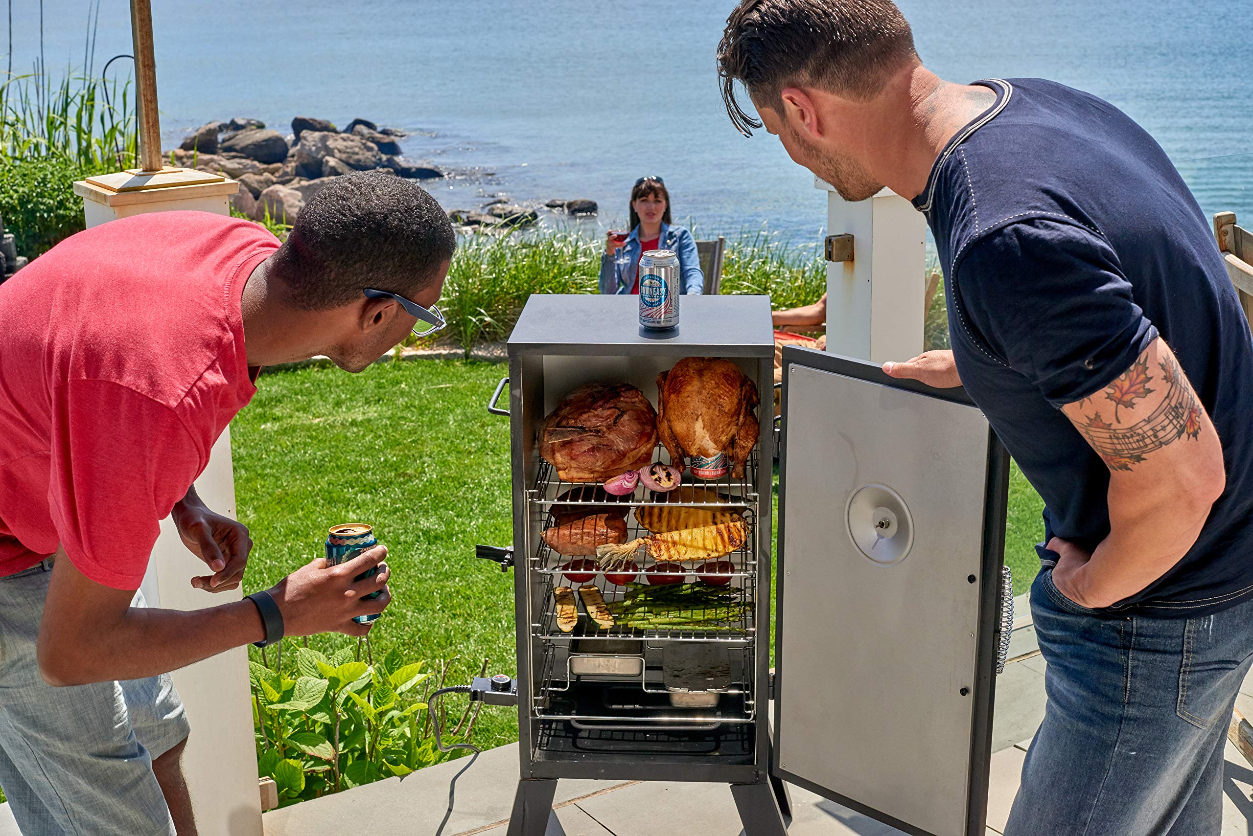 THREE REMOVABLE RACKS: Dishwasher-safe chrome-steel racks provide flexibility for smoking larger cuts and make cleanup simple.