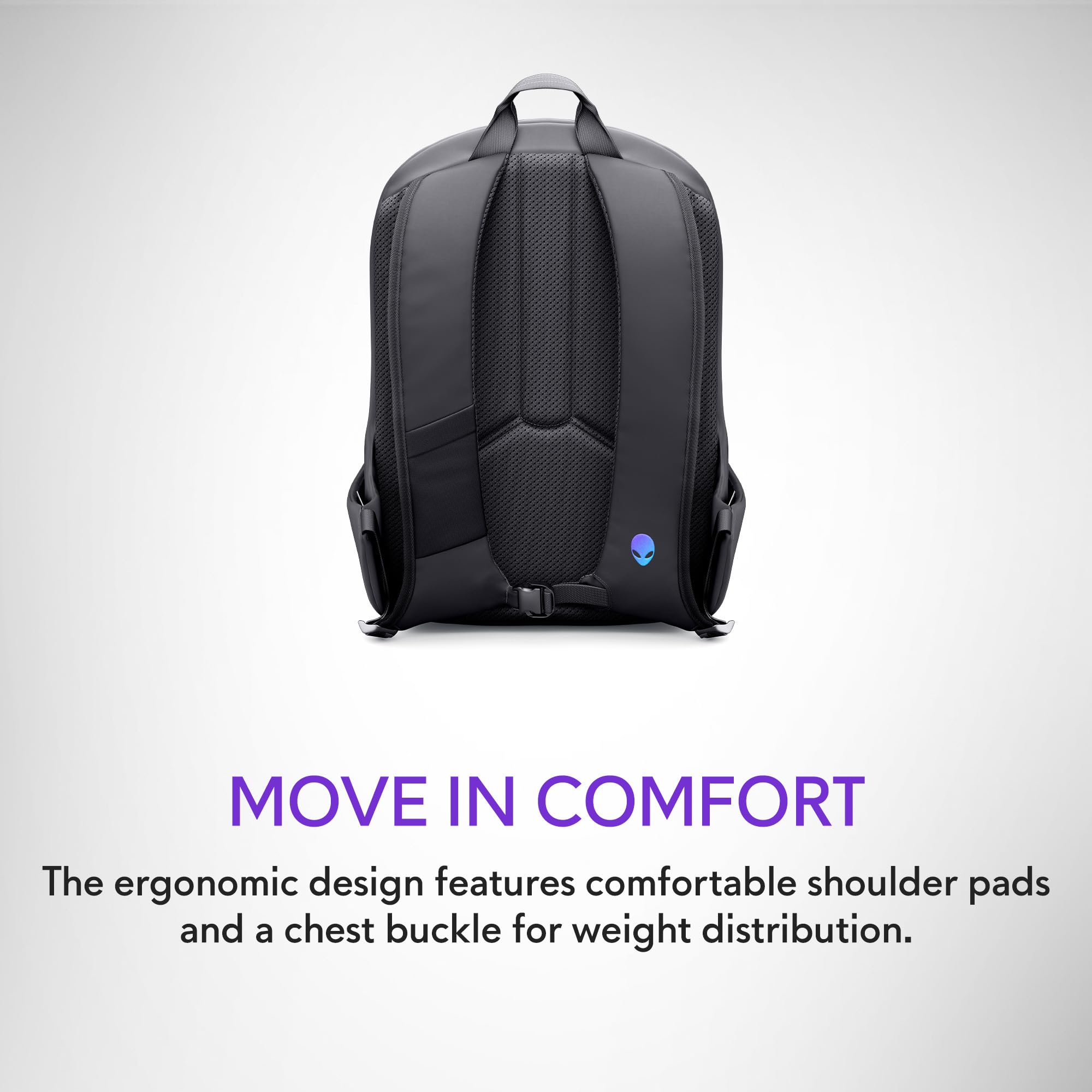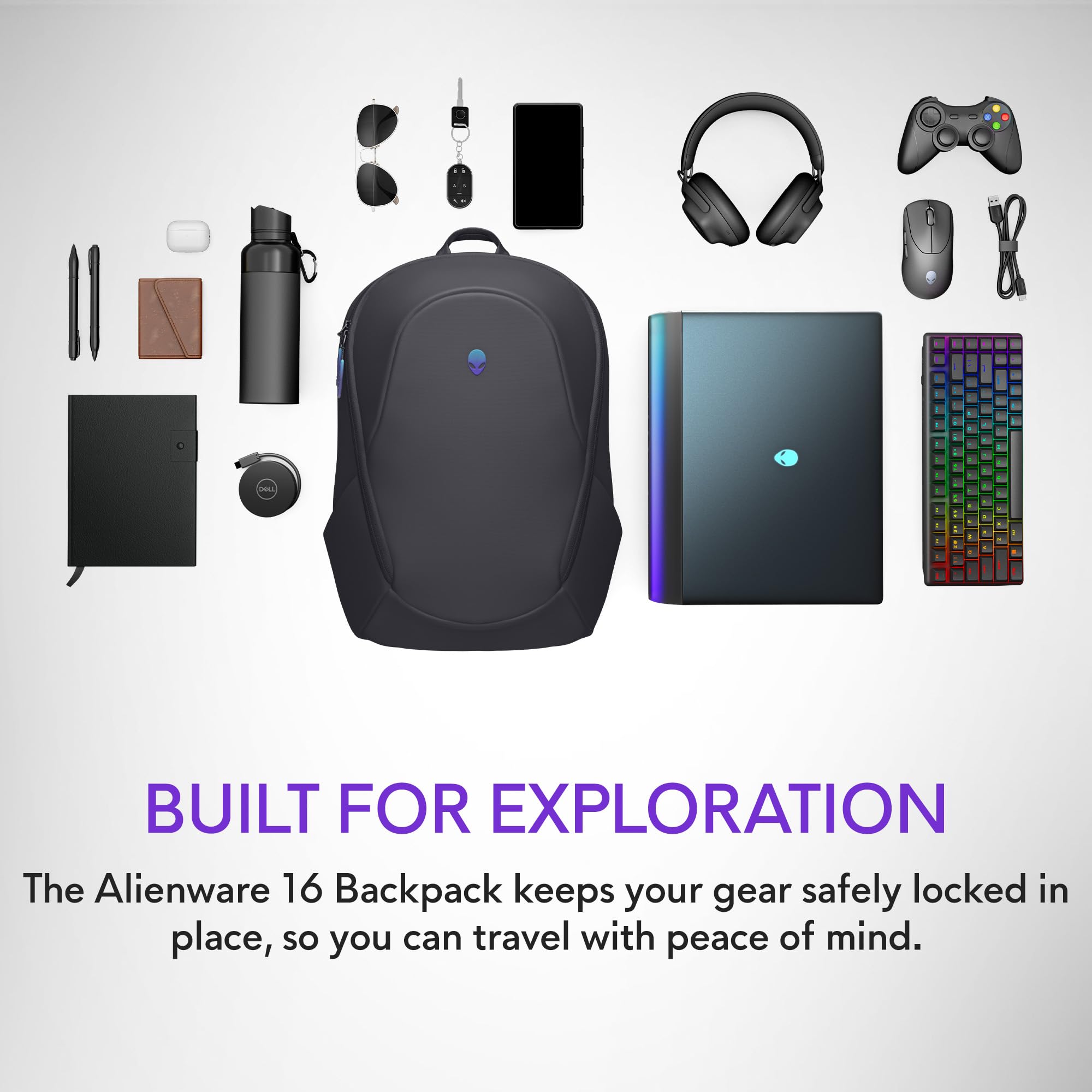 Alienware 16 Backpack - AW5625P. Keep your gaming devices and accessories organized and protected with the ultimate travel backpack. The Alienware 16 Backpack keeps your gear safely locked in place, so you can travel with peace of mind.