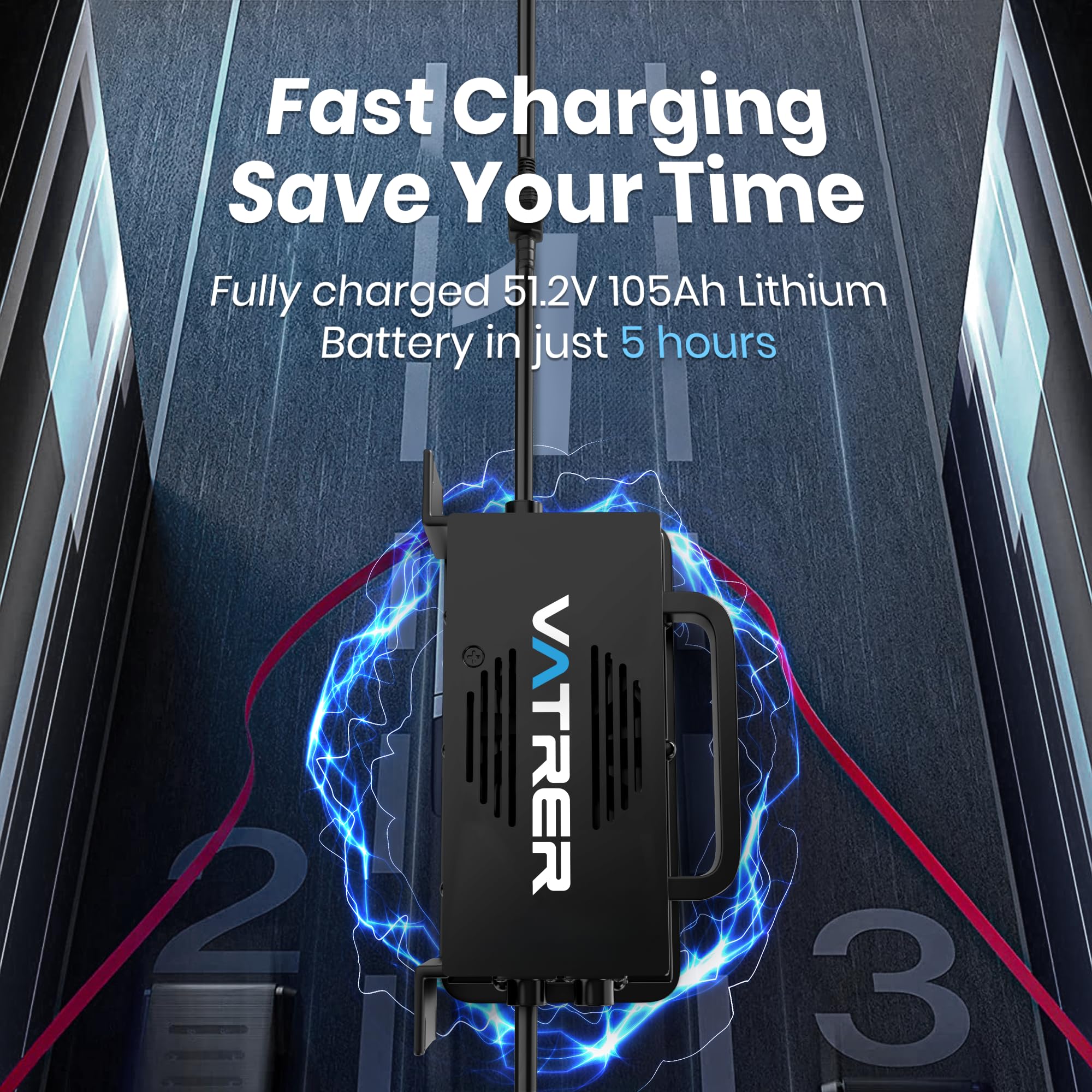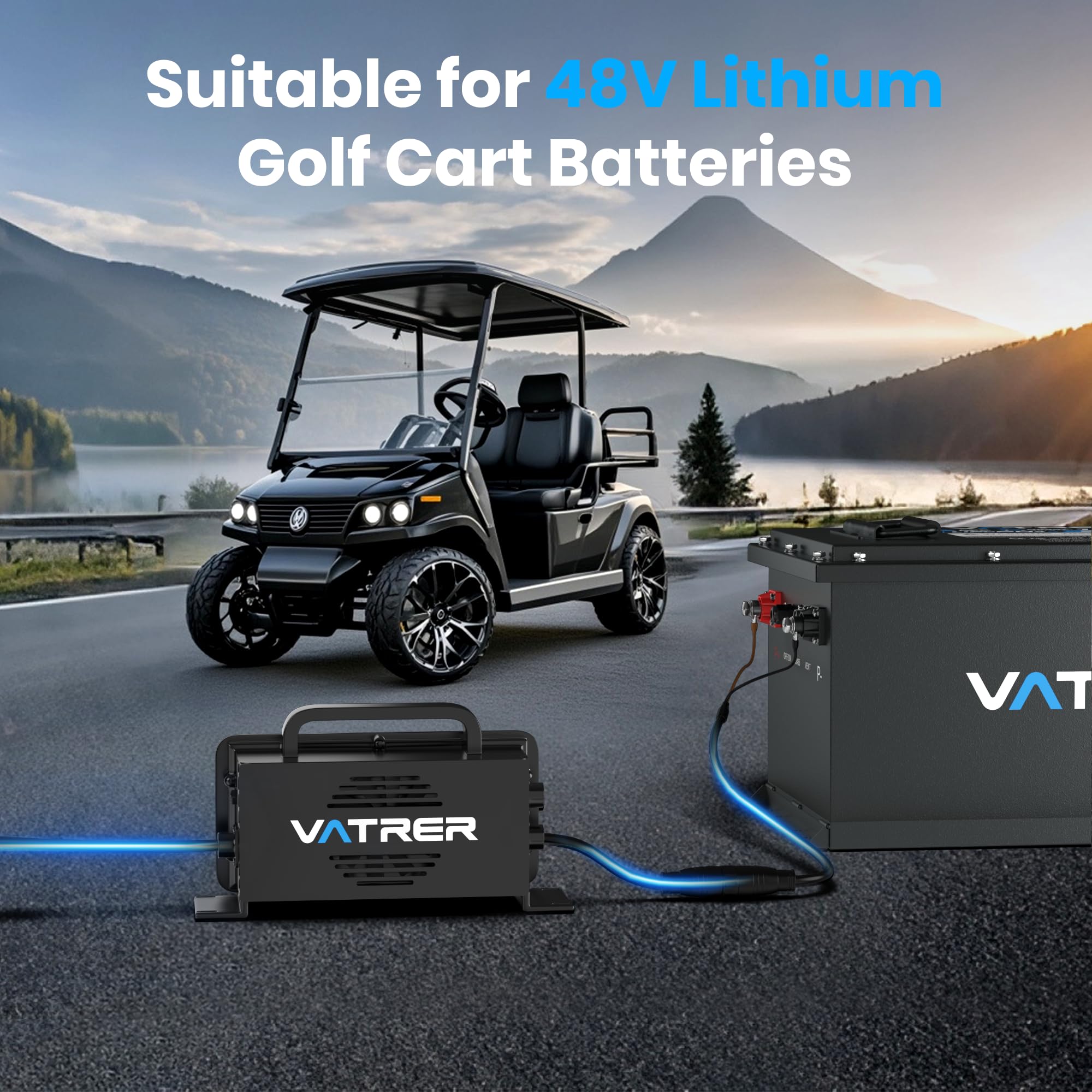 【Wide Compatibility】58.4V lithium battery charger is designed for 48V (51.2V) LiFePO4 batteries. Compatible for 48 volt golf cart lithium battery, floor scrubber lithium battery, boat lithium battery, solar system lithium battery, RV lithium battery, Off Grid lithium battery, wall mount 48v lithium ion battery, trolling motor lithium battery, etc.