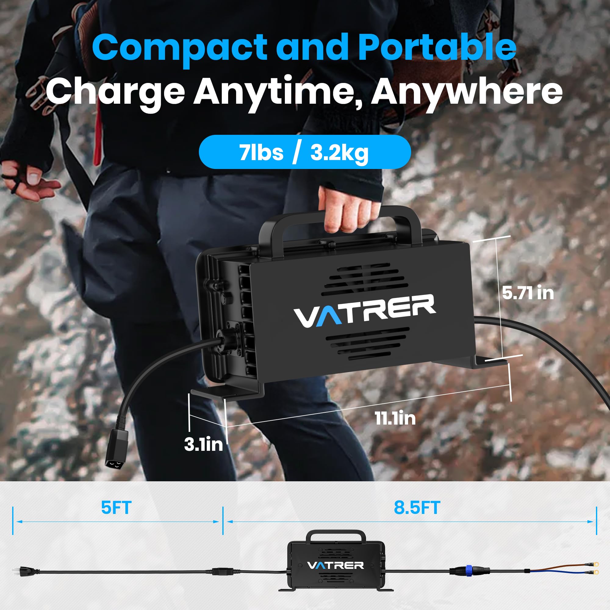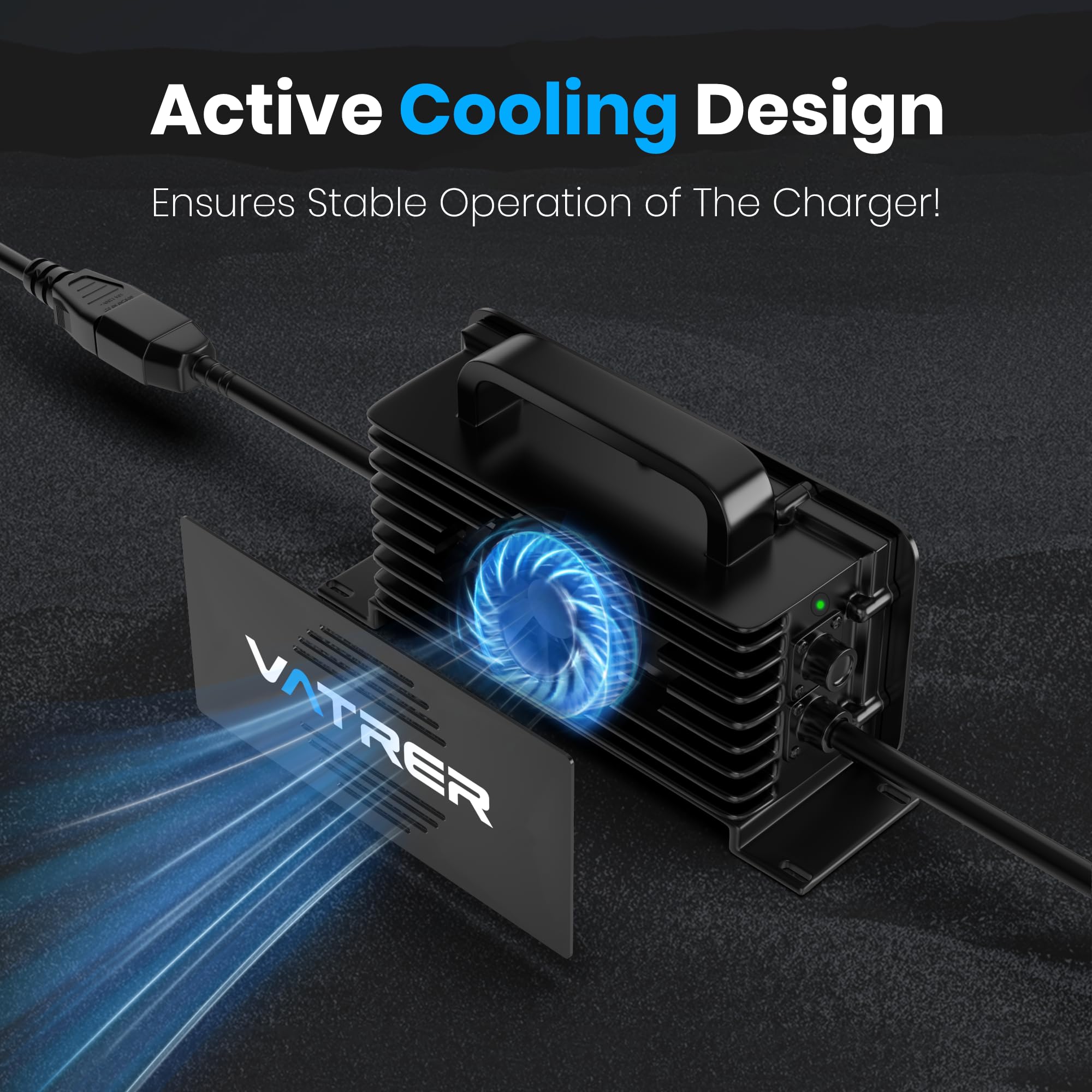 【Optimized for LiFePO4 Battery Systems】This 58.4V 20A smart charger is specifically engineered for 48V (nominal)/51.2V (charging voltage) lithium iron phosphate (LiFePO4) battery packs, delivering precision charging tailored to this chemistry's unique requirements.
