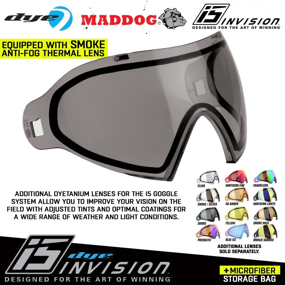 Maddog Dye Mask Combo for the Win! The DYE PRECISION i5 Anti-Fog Thermal Paintball and Airsoft Goggle is engineered to perform and inspire, representing the pinnacle of mask development. This aggressive, ultralight mask offers superior protection, enhanced venting, exceptional comfort, improved sound processing, and top-tier safety. Worn by the best in paintball! Maddog Combo Package includes a Maddog Microfiber Storage Bag to keep your mask protected and scratch-free between games.