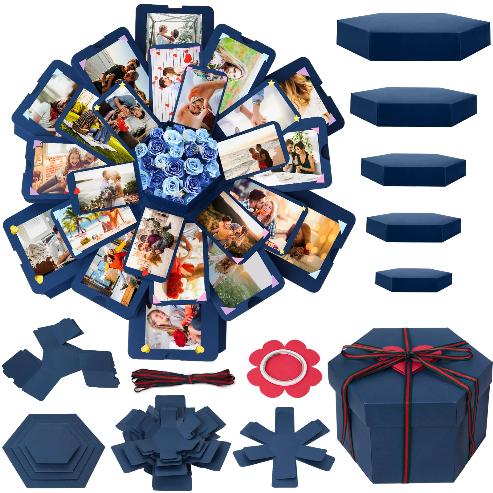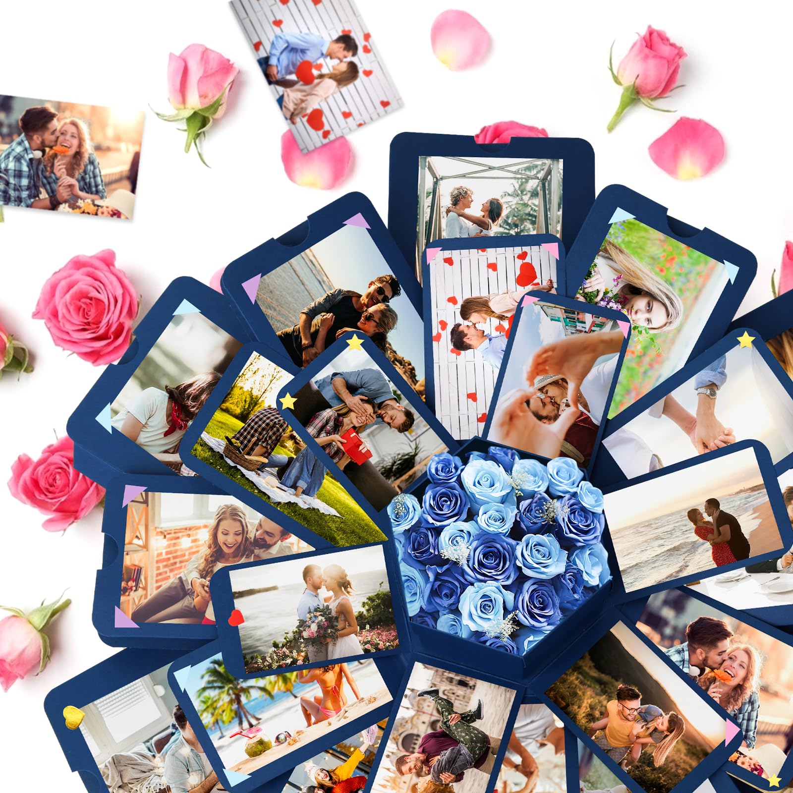 CREATIVE EXPLOSION GIFT BOX - You can paste photos on every layer, up to 36 pieces. The smallest gift box can hold gifts like rings, lipstick, necklace, watch, earrings, chocolates, perfume, etc., creating an unforgettable memory for your loved ones.