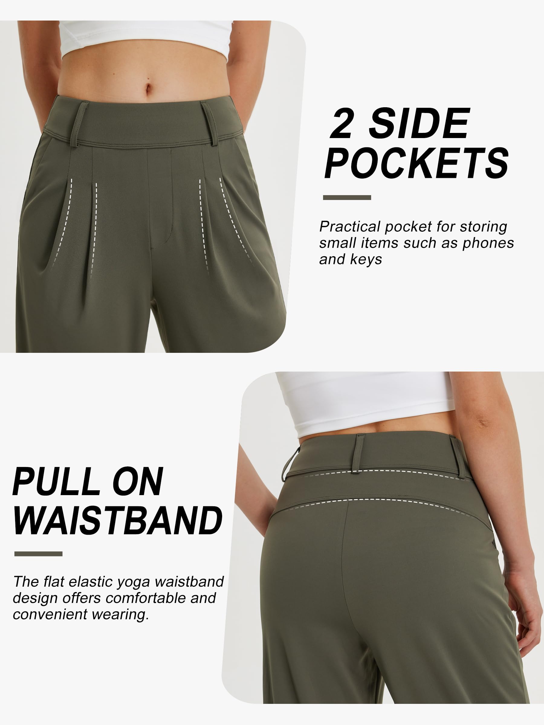 Soft and Comfy Fabric: Crafted from high-grade, 4-way stretch fabric, these wide leg pants are ultra-soft, non-see-through, and wrinkle-resistant which has a sleek drapey look as work pants but comfy as yoga pants