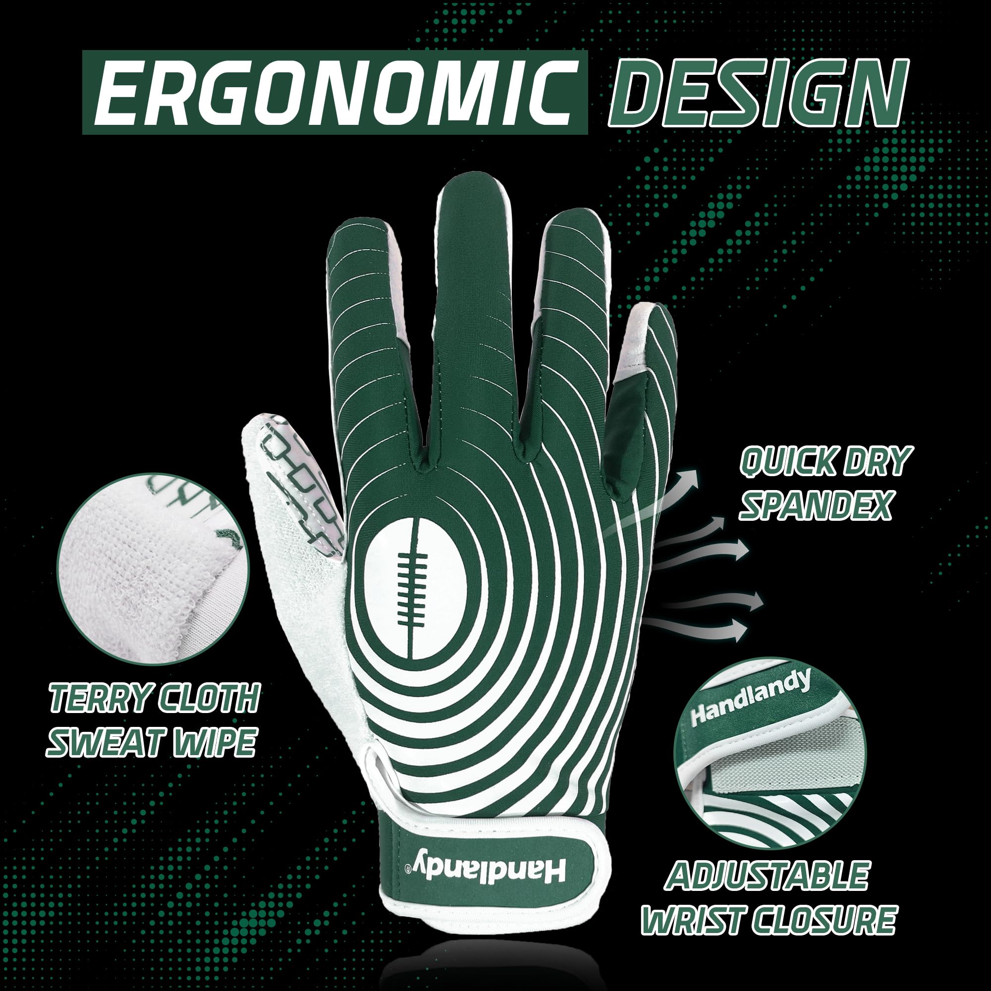 Flexible & breathable football gloves: Stretchable quick & dry Spandex back and comfortable lining to keep the hands cool and dry on the practice or game, comfortable fit and doesn’t make hands sweat.