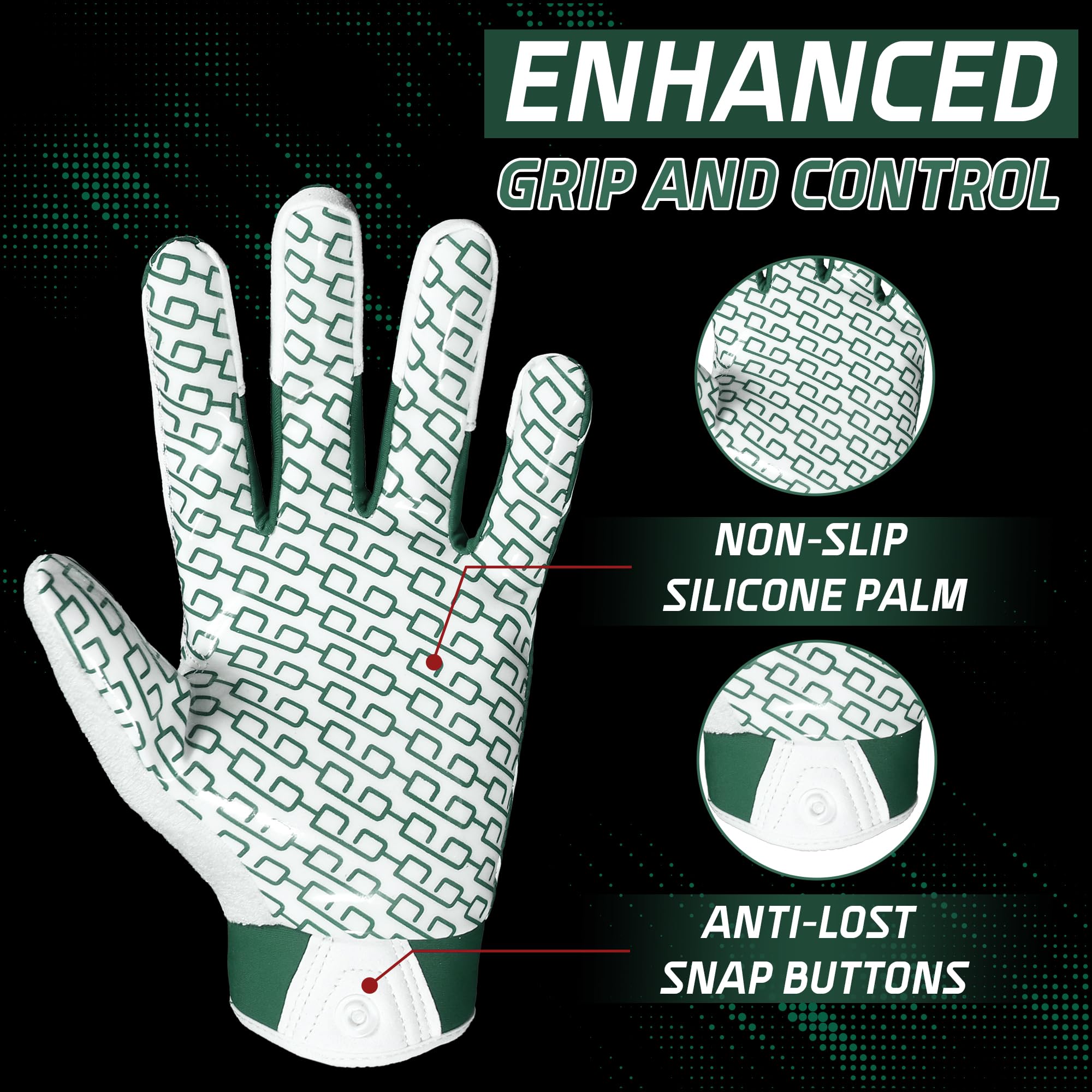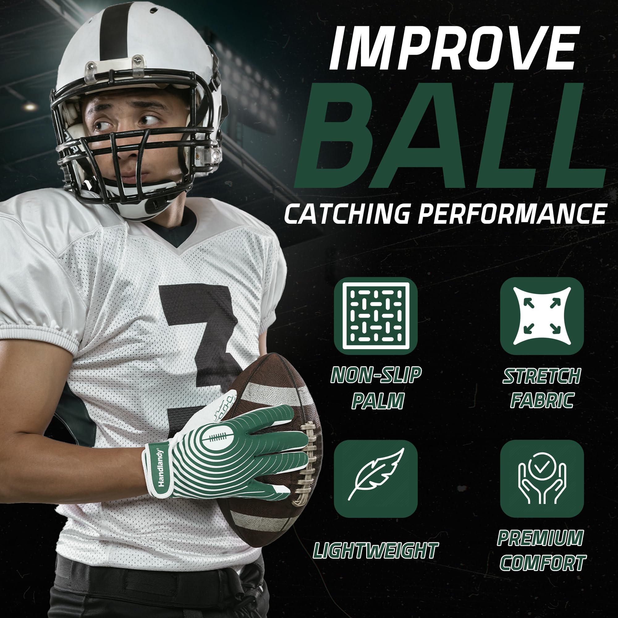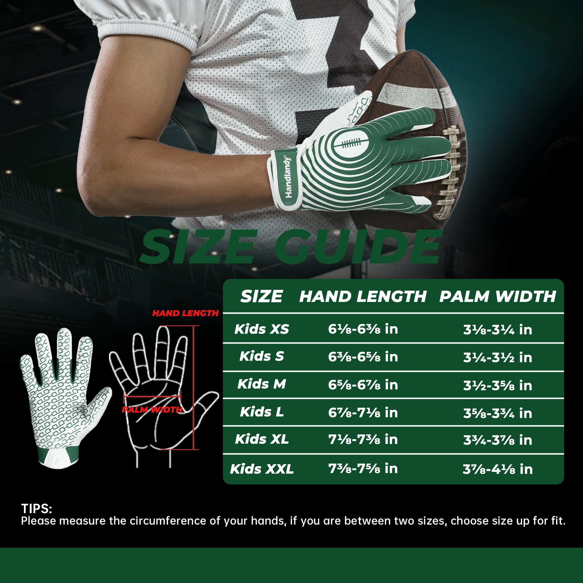 Amazing grip football gloves, keep the ball in hand : One piece tacky silicone palm design for an excellent grip to helps kids catch and hold on to footballs, durable and comfortable. These youth football gloves are suitable for teenagers, please refer to the scale table when purchasing!