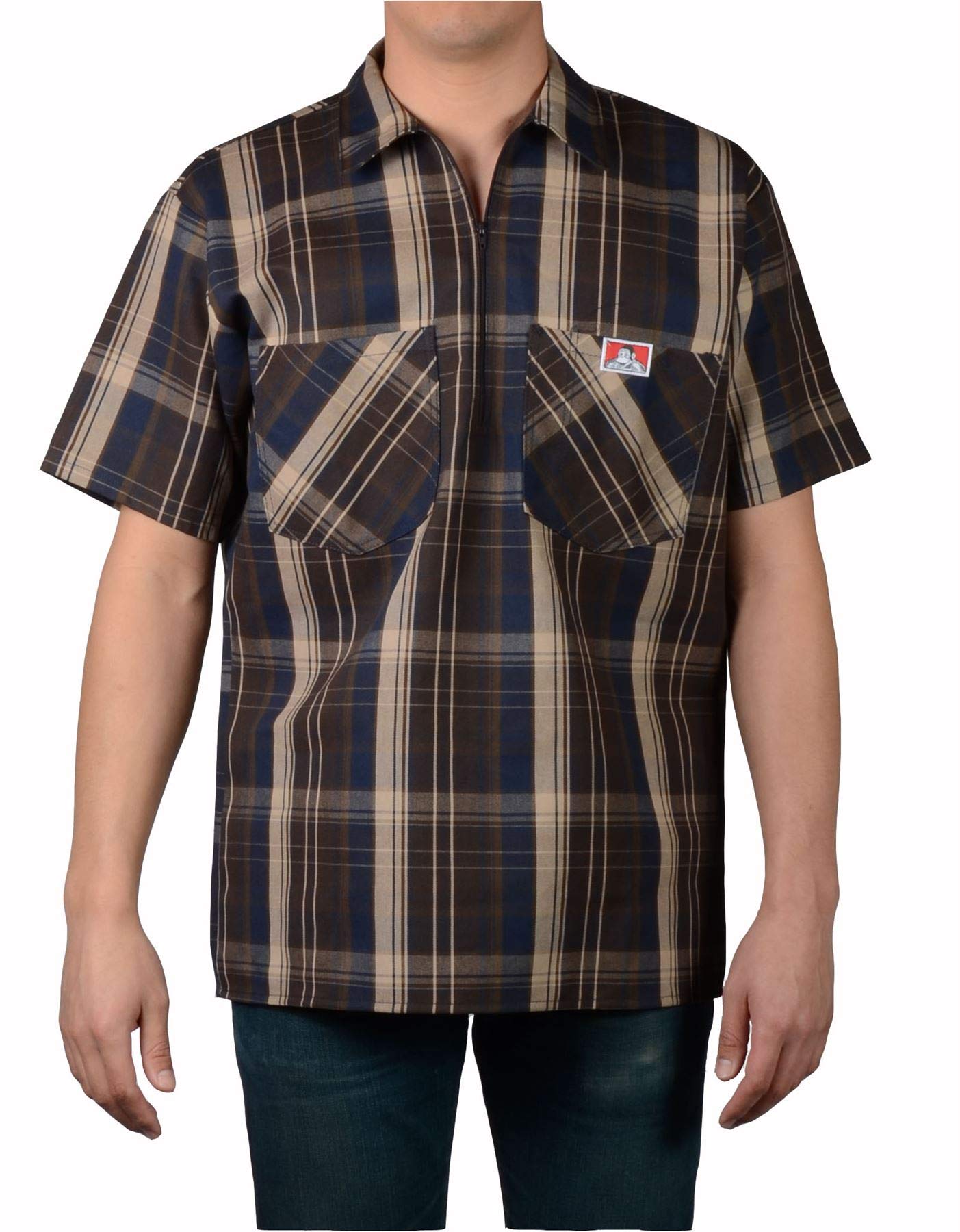 Description Crafted over time, the Short Sleeve Half-Zip Solid Shirt embodies the classic work shirt. Made with premium Ben Davis Plenty Tough fabric, it's durable yet comfortable for all-day wear. With two chest pockets and a pencil pouch, it's ideal for keeping essentials close. Pair it with our Original Ben's Pants for a complete Ben Davis look. 65% Polyester/35% Cotton Plenty Tough fabric, Regular fit, 9' zipper placket, 2 chest pockets with pencil pouch on left pocket, Machine Warm Wash, Tumble Dry Warm, Model is 6' 0' wearing a Medium, Country of Origin: Imported with U.S.A fabric