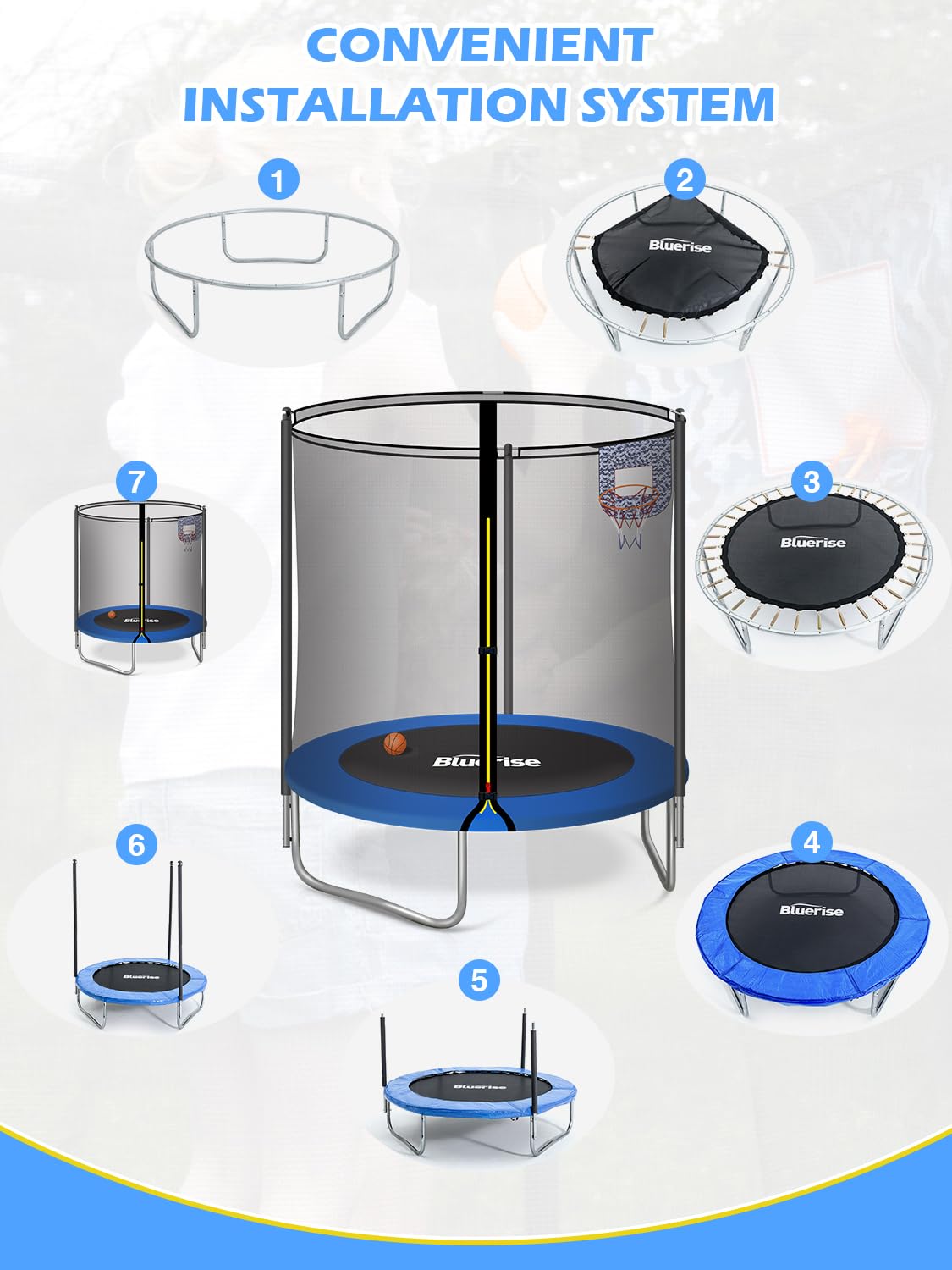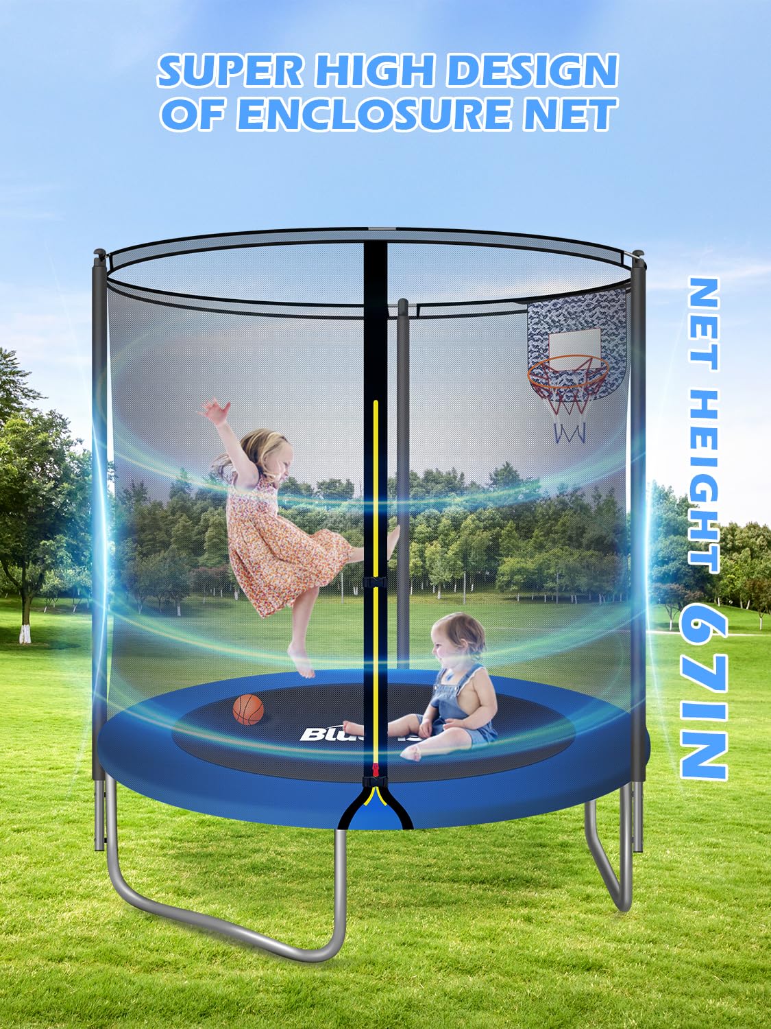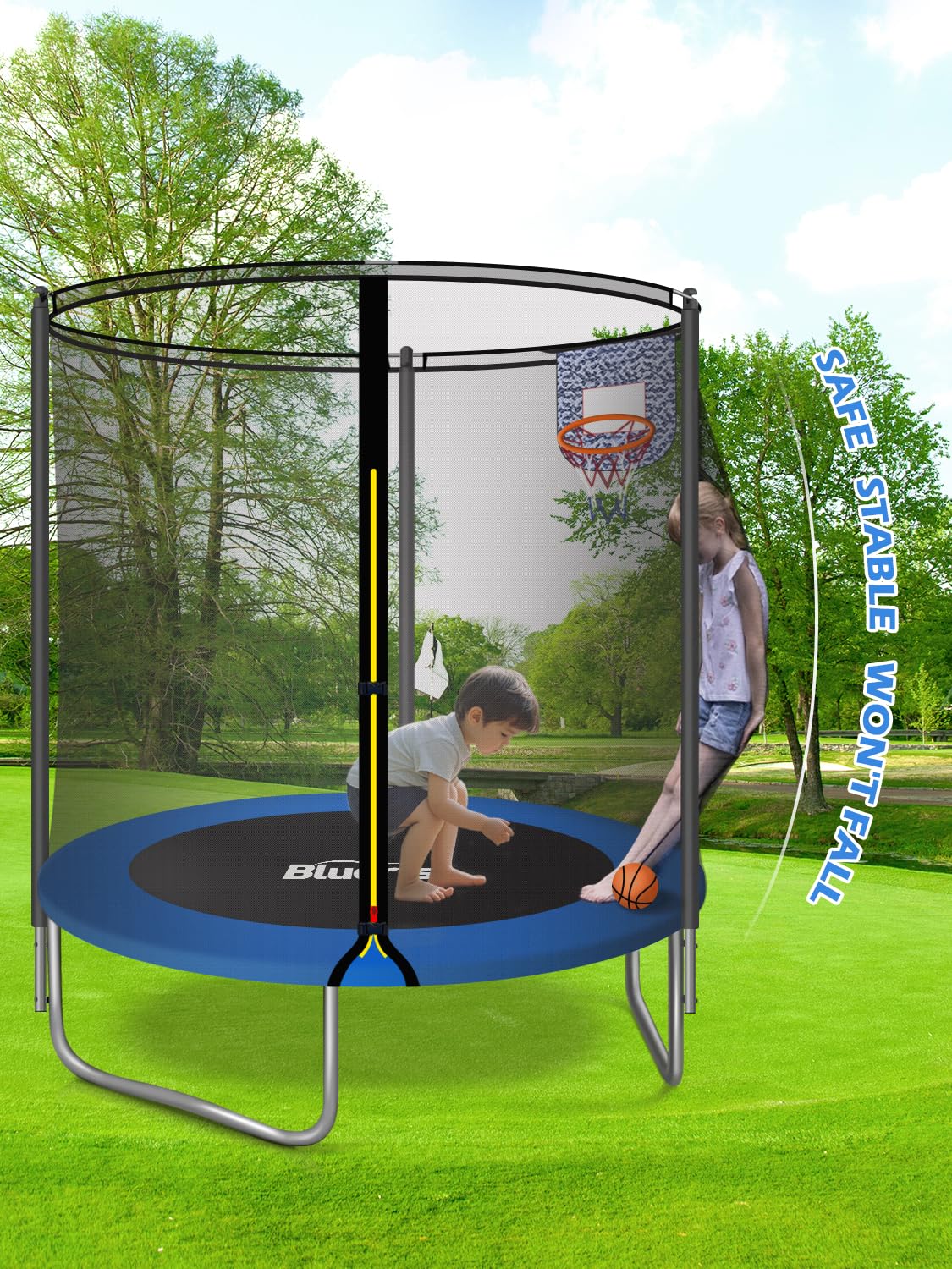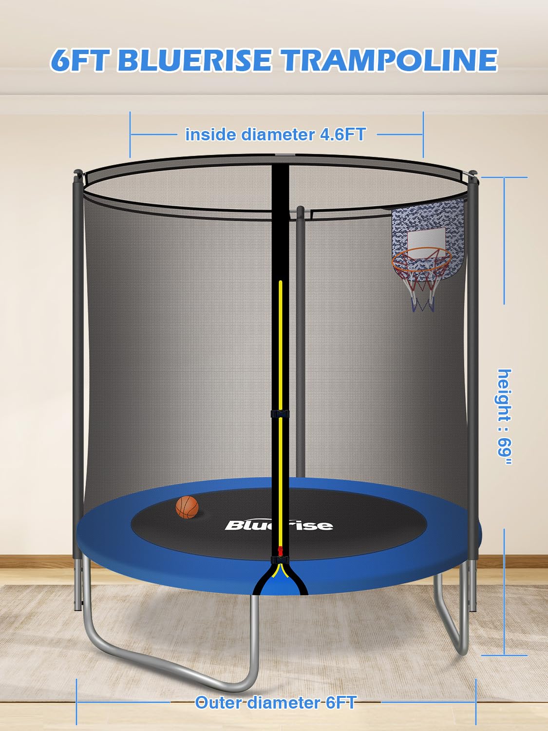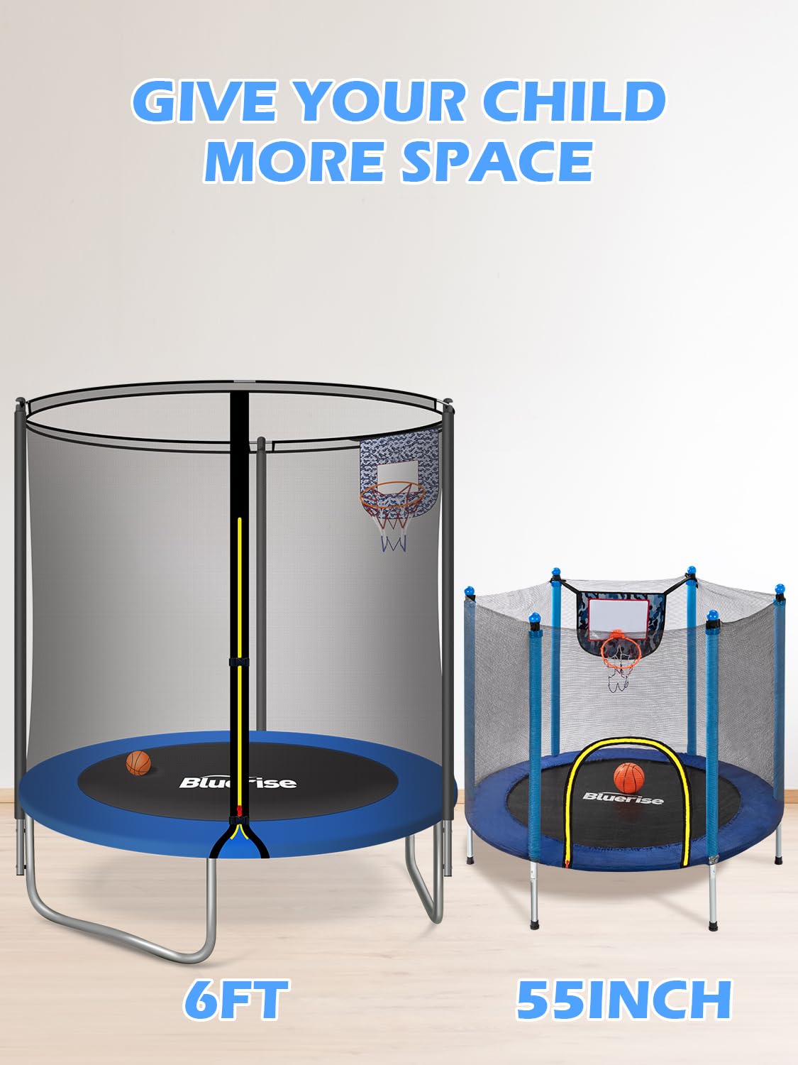 【Perfect Gift】The newly upgraded trampoline is an ideal Christmas gift for your kids. BLUERISE 6FT trampoline with basketball hoop provides great fun and jumping exercise.