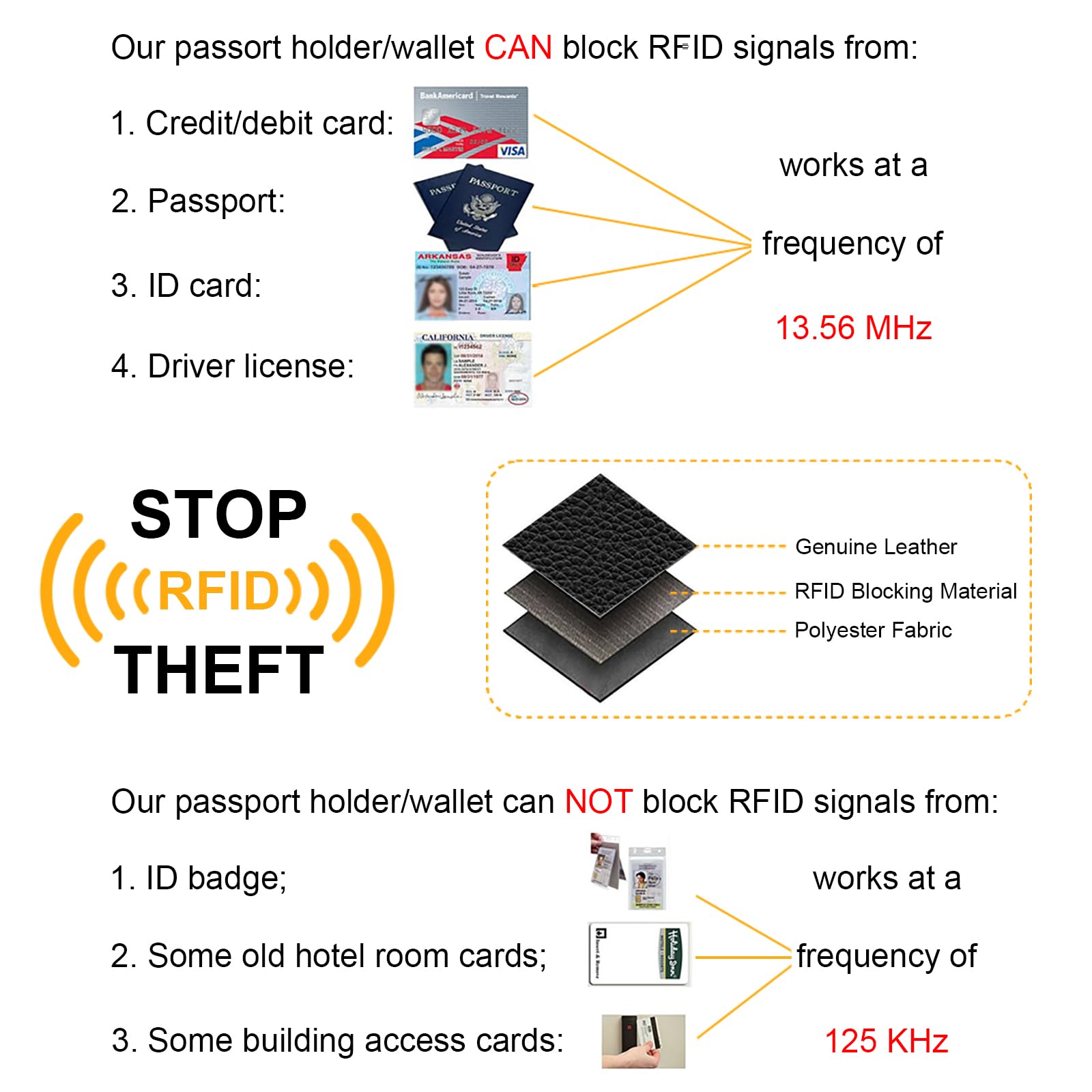RFID Blocking: Equipped with RFID blocking technology, it prevents unauthorized scanning of contactless cards, protecting your sensitive information from digital theft