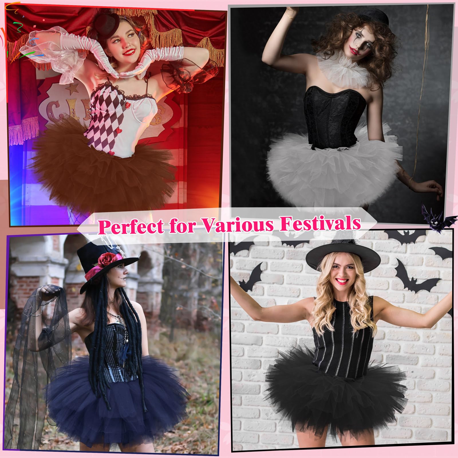 EXCELLENT FASHION ACCESSORIES: The tulle skirts for women can easily match with various basic clothes, such as T-shirts, sweaters, slim dresses and so on. And we recommend wearing shorts, tights or leggings under the ballet tutu for full coverage. Whether you're dressing up for a themed party or need extra accessories for your outfit, our tutu dress for women are the perfect addition!