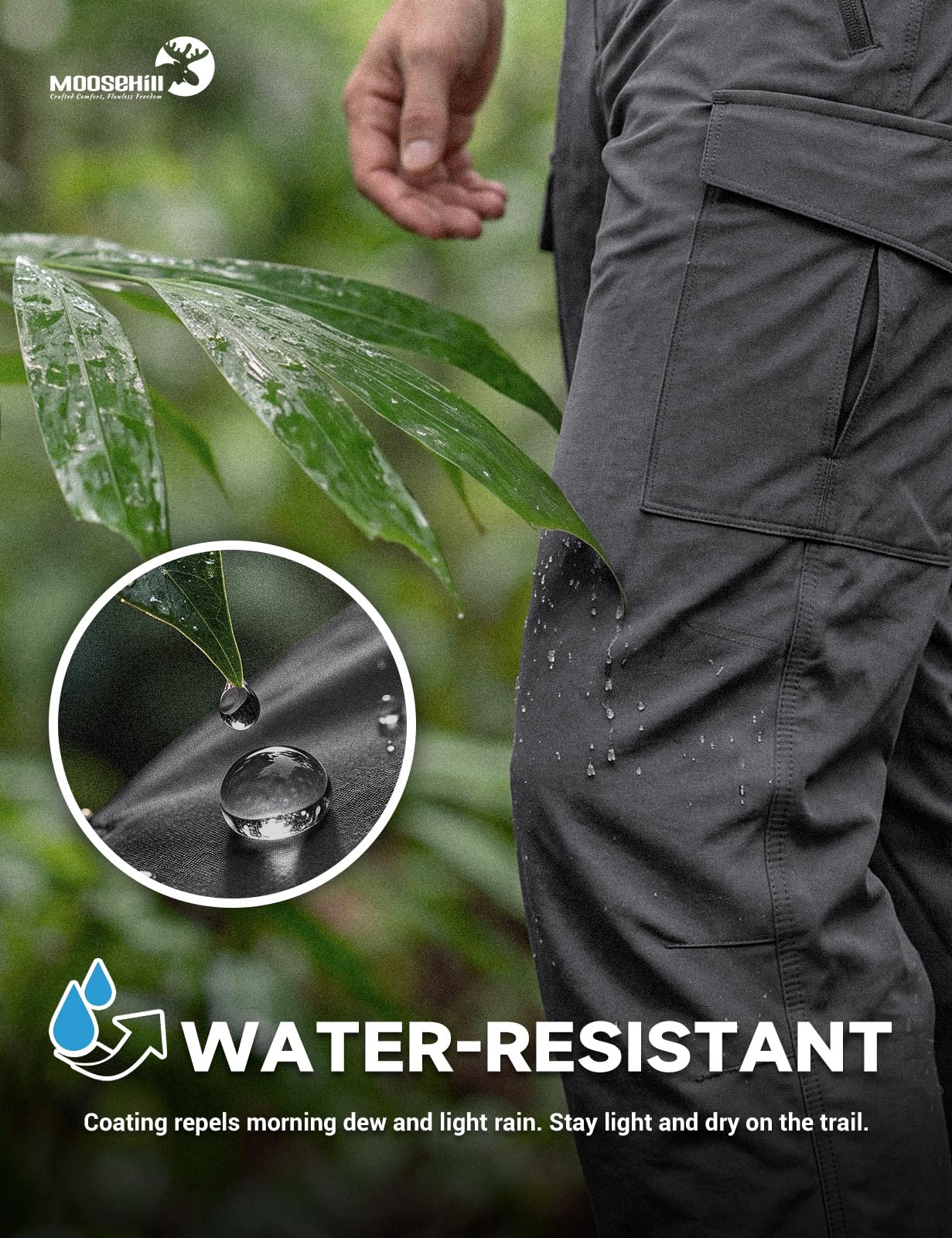 Water-Resistant & Stay Dry & Move Freely: Crafted with premium fabric, these cargo pants for men features advanced quick drying and water-repellent properties, ensuring that they stay dry even in the face of unexpected rain showers or splashes. The stretchable fabric provides exceptional flexibility, enabling effortless movement as you conquer rugged terrains or climb challenging trails. That's not all, they also feature lightweight, breathable, durable, sun protection, etc.