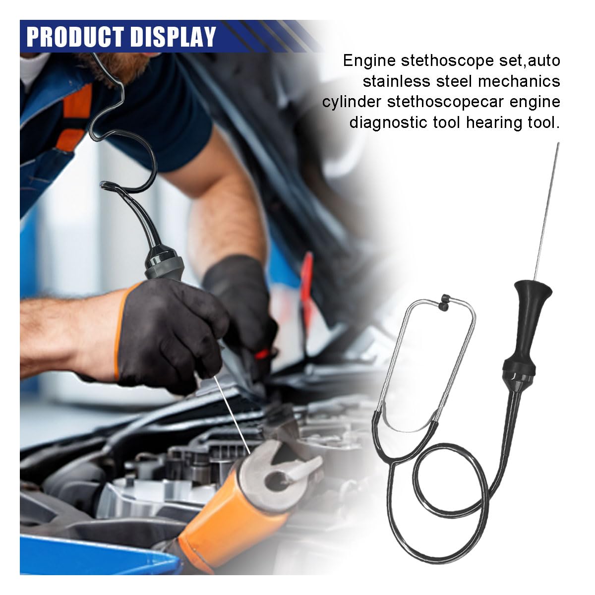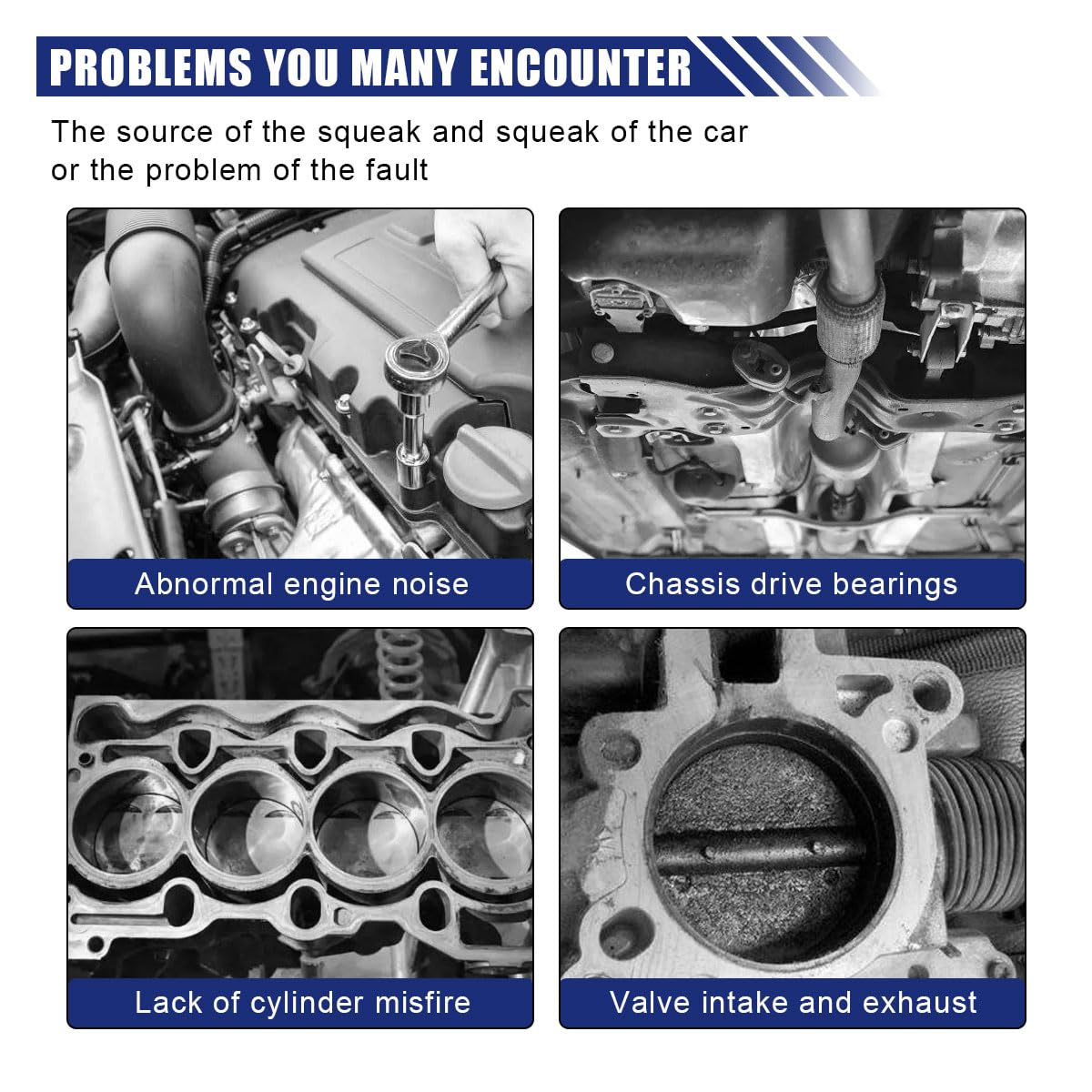 【Application】:This engine stethoscope is a useful diagnostic tool to help you quickly and accurately locate vehicle noise, suitable for identifying faulty water pumps, broken gaskets, defective valves, damaged gears, bad pulleys, and other damaged or incorrect parts that cause engine noises.