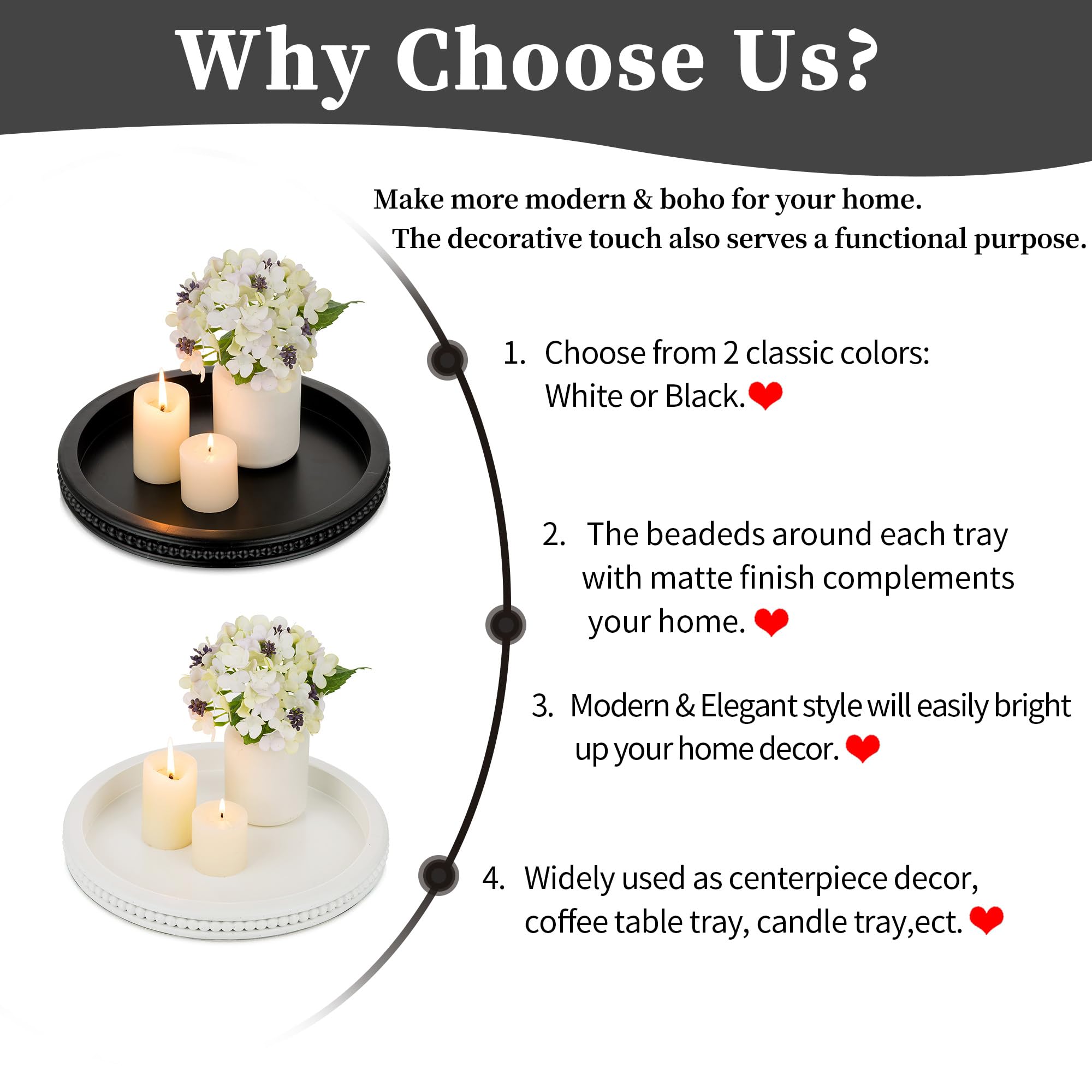 PRACTICAL & BEAUTIFUL - The trays for coffee tables are a great nice accent piece. The edge of the coffee table tray is designed with beaded style, and they are in white color, making them natural and simple. The plastic beads and wood tray blend together will give you a shabby chic feeling, which can show your nice taste to others.