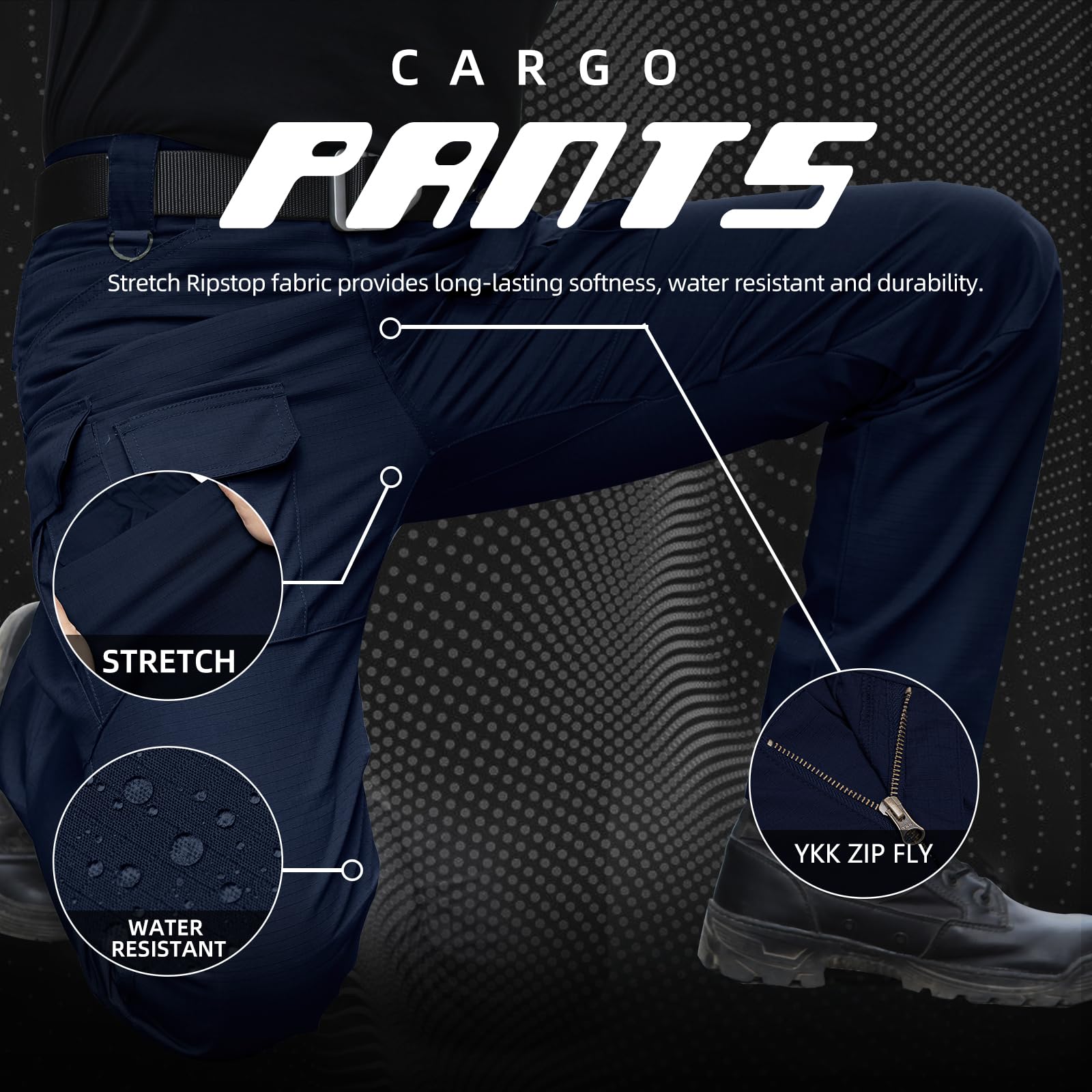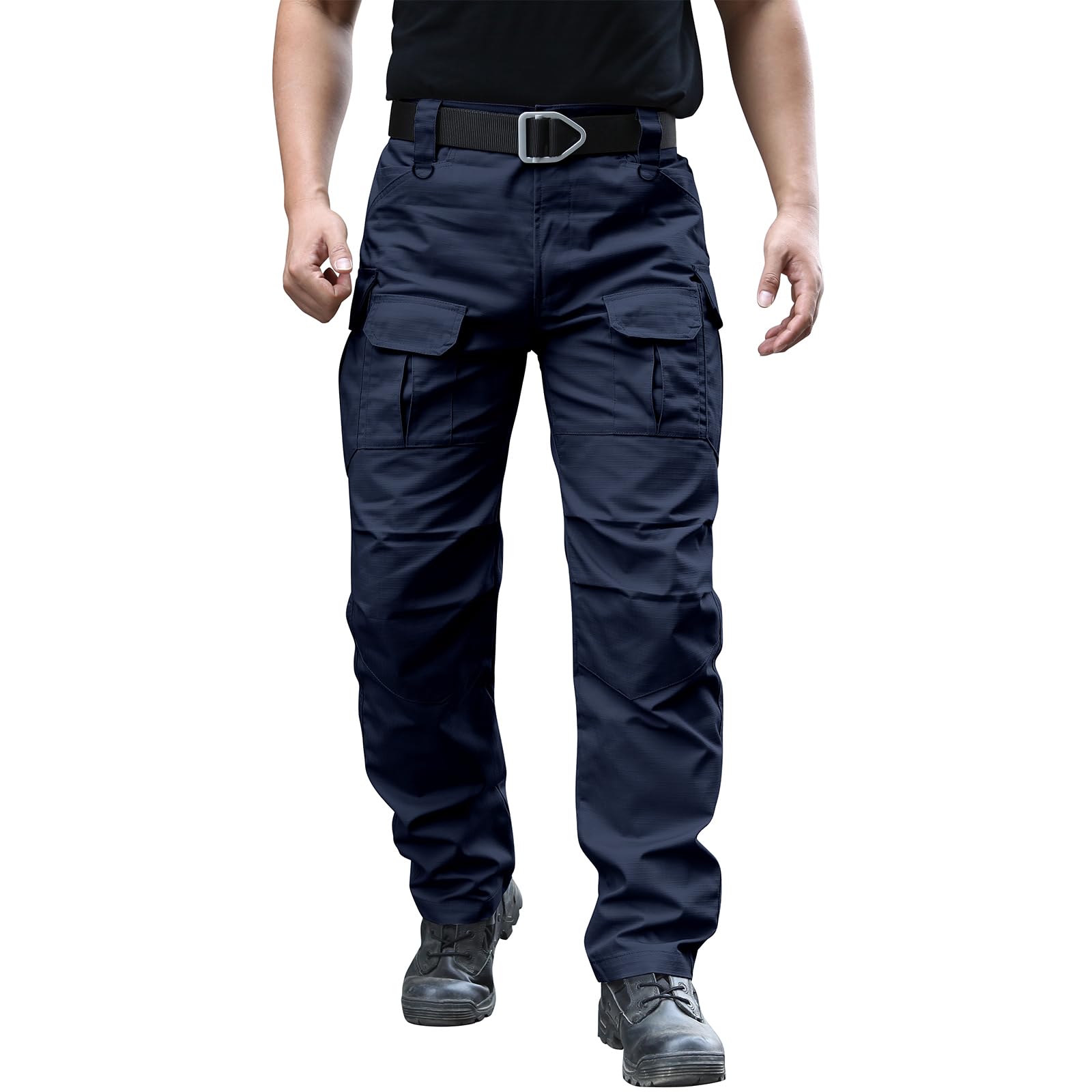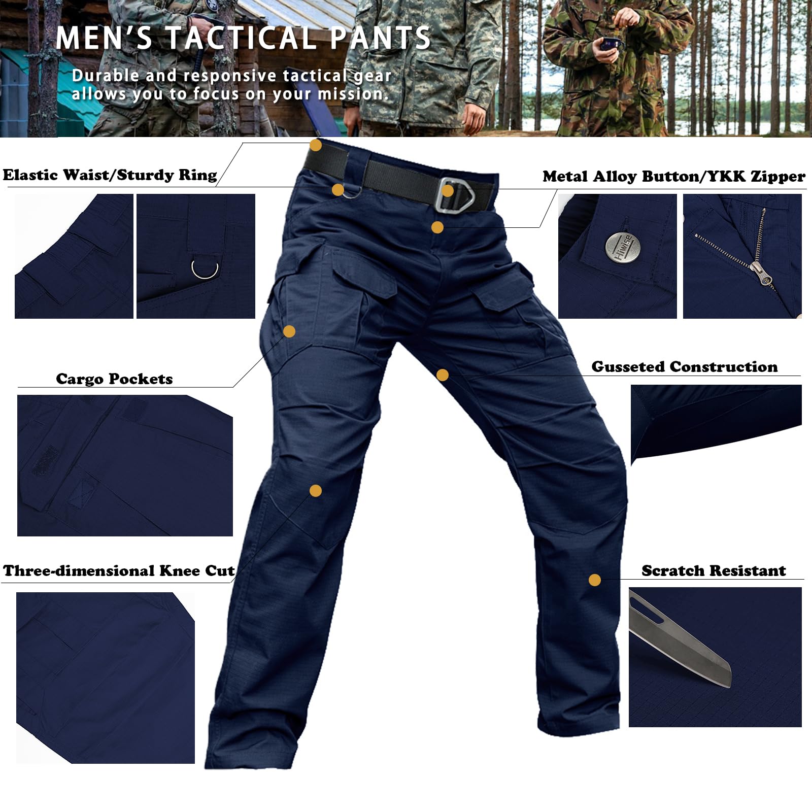 [Stretch Fabric] : Men's cargo tactical pants are made with a stretchy polyester, cotton and spandex blend for mobility and durability. Ripstop fabric provides excellent wear-resistant, water-resistant , stain-resistant, scratch-resistant and dust-resistant. Convenient to outdoor activities, or daily wear. These tactical pants are a loose fit, if you prefer a slimmer fit, please go one size down. (Note: The exclusive Tactical Belt is not included).