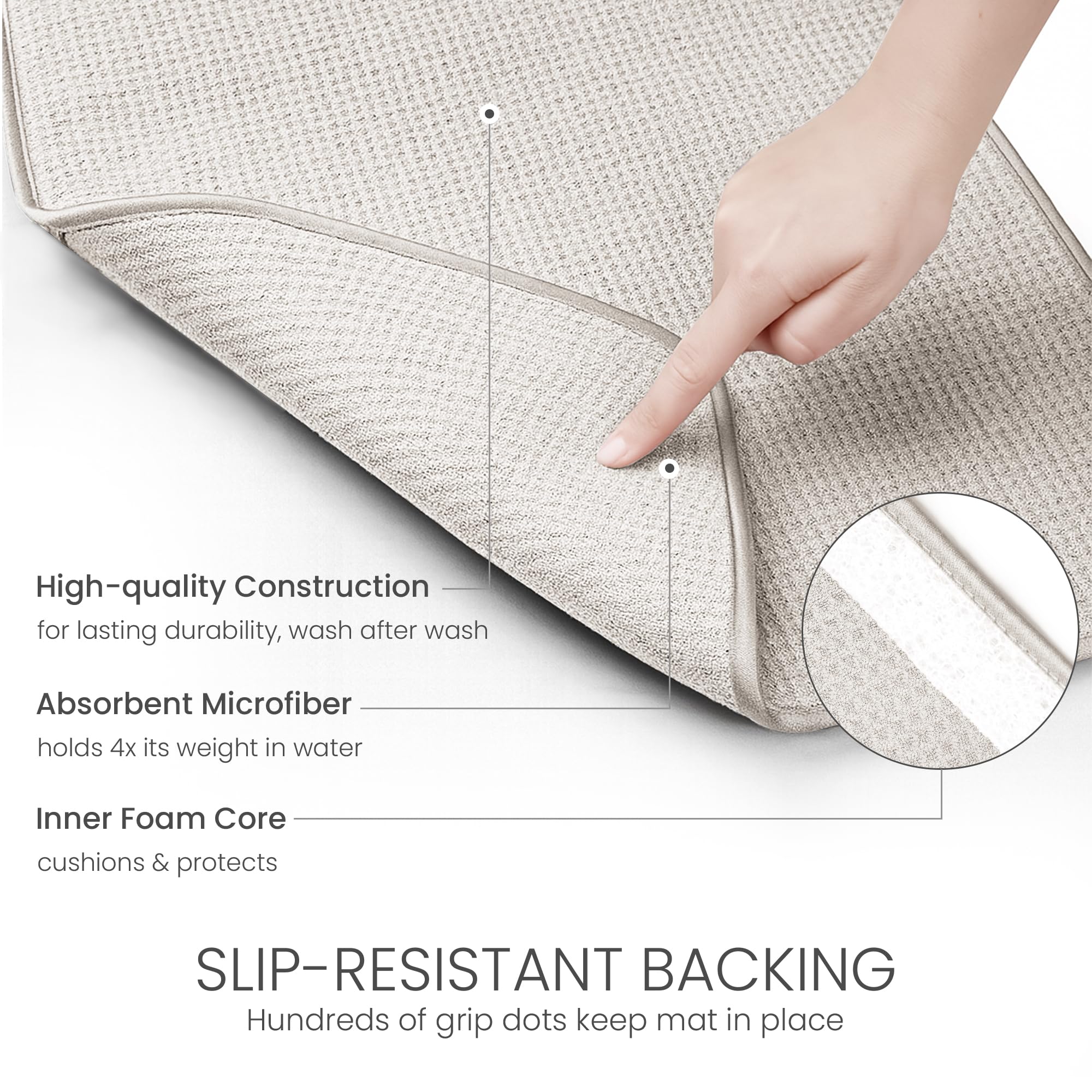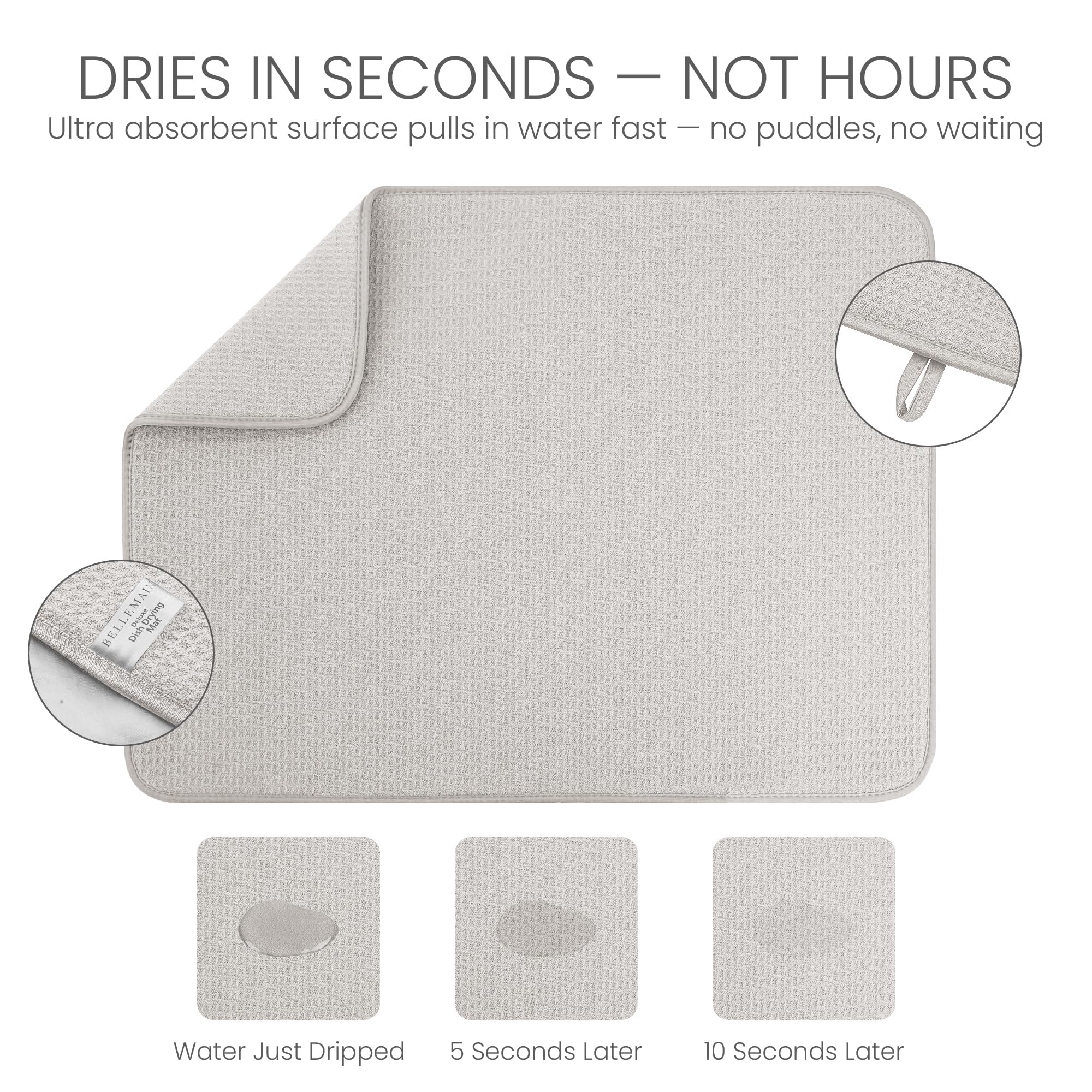 CUSHION , SHIELD , DRY | 3-PLY DESIGN: The microfiber outer shell holds up 4x its weight in moisture , while the laminate foam core resists odor even if you use it every day . This makes it the ideal kitchen essentials for new home and dish drying mat.