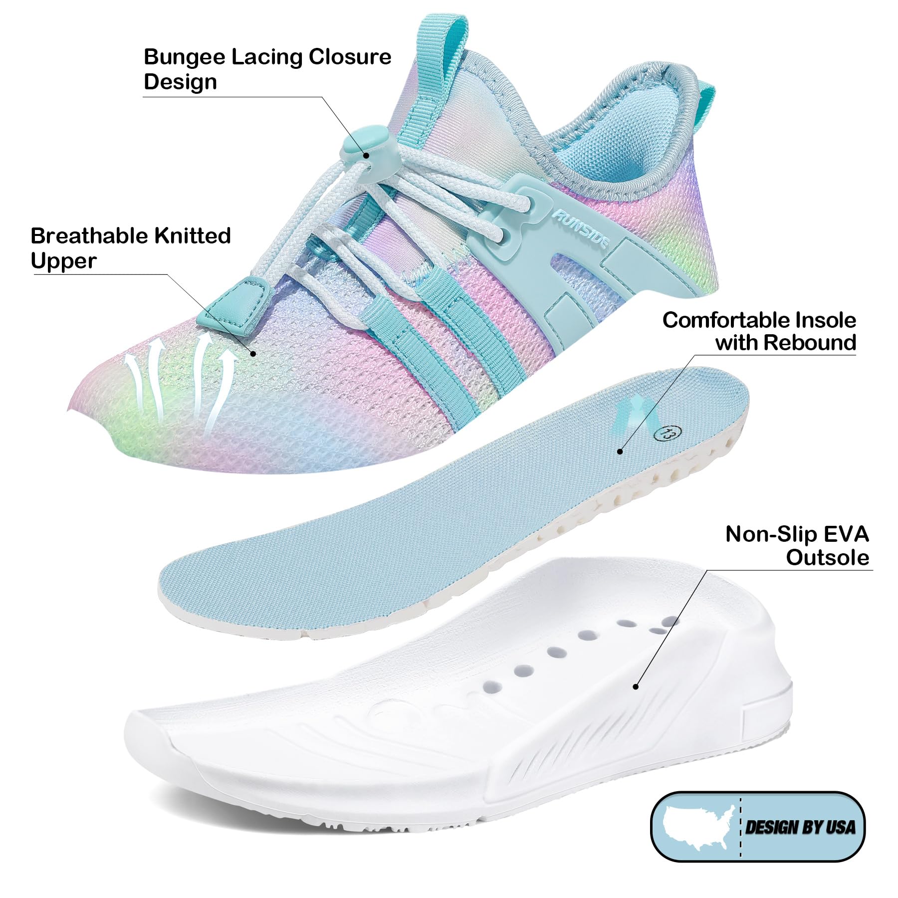 Non-slip Outsole: Safety and functionality go hand-in-hand with our kids' sneakers; The non-slip EVA outsole ensures a firm grip on various surfaces